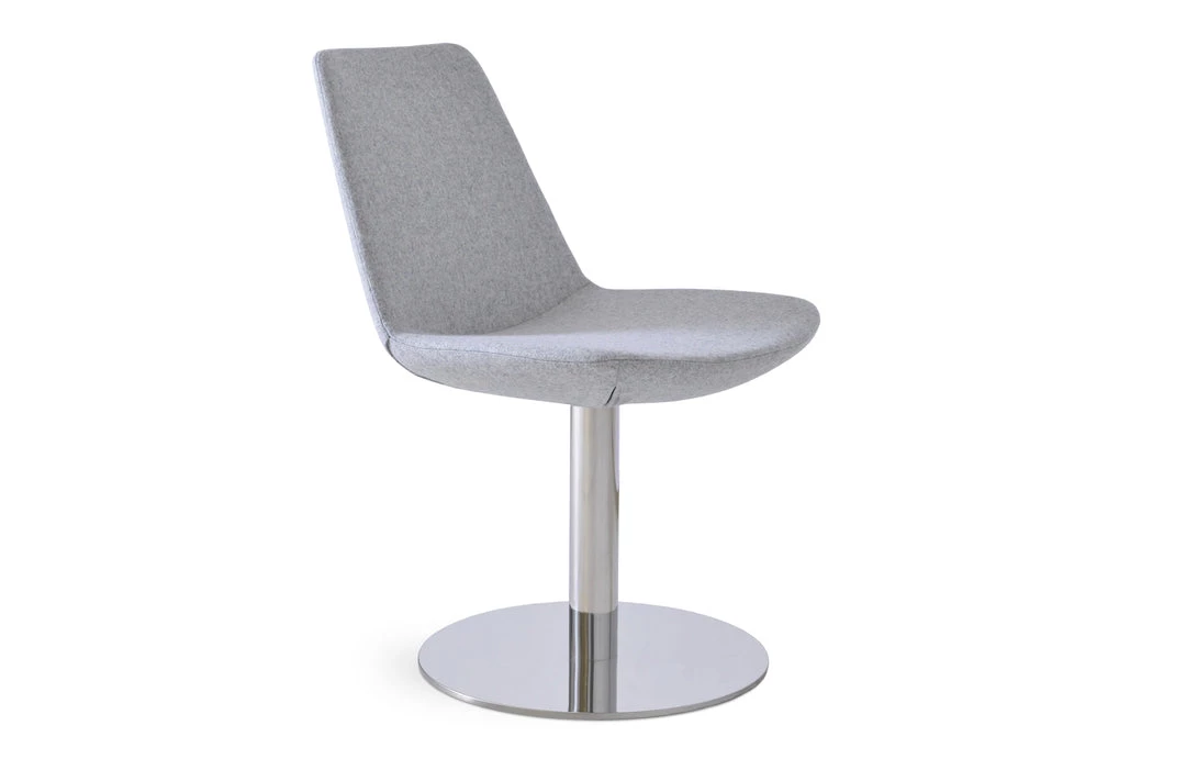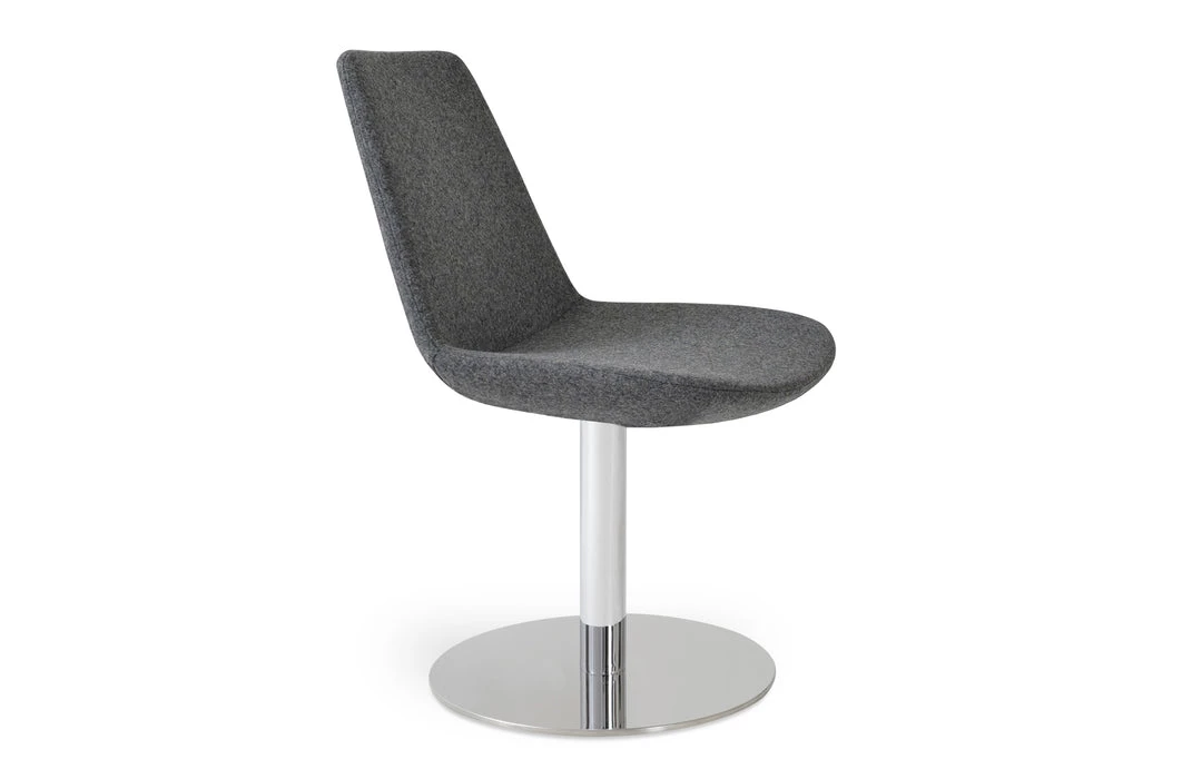 Eiffel Round is a contemporary chair with a comfortable upholstered seat and backrest on a chromed steel tube column and solid chromed steel swivel round base. The seat has a steel structure with “S” shape springs for extra flexibility and strength. This steel frame is molded by injecting polyurethane foam. Eiffel seat is upholstered with a removable velcro, enclosed leather, PPM, leatherette, wool as well as Camira organic wool slip cover. Eiffel Round may be upholstered with variety of other colors as a special order with a minimum of quantity required. The chair is suitable for both residential and commercial use. Eiffel round is designed by the sohoConcept team.