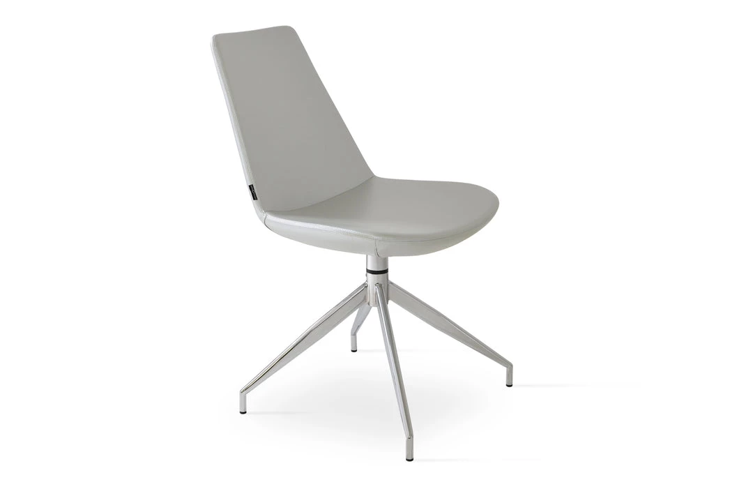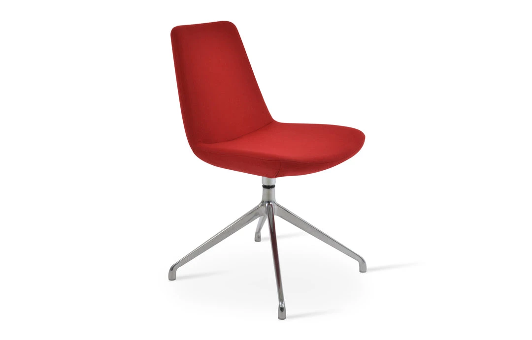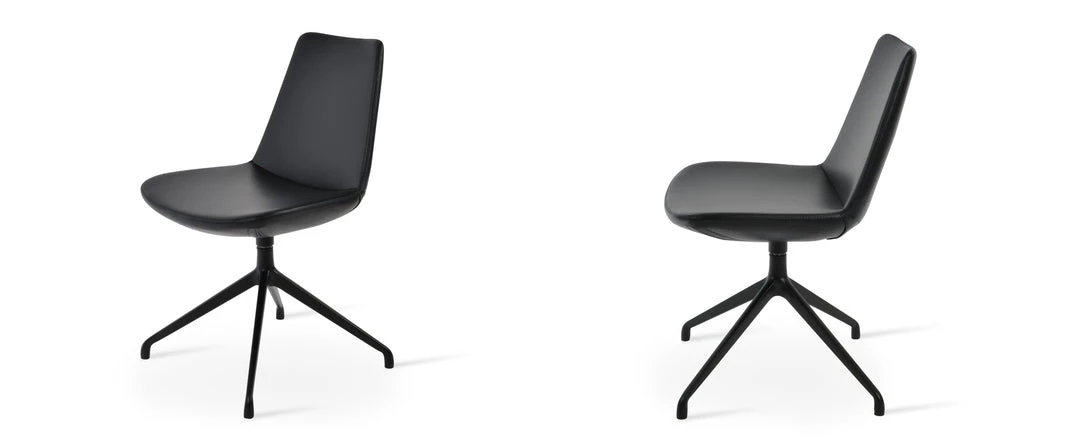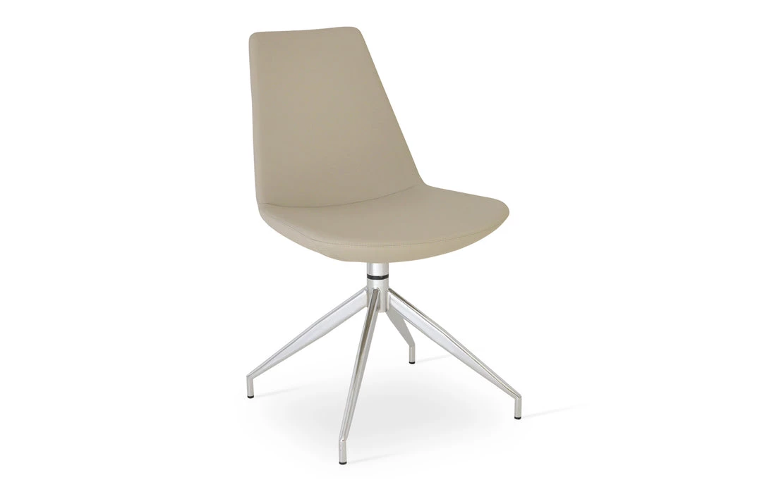 Eiffel Spider is a contemporary dining chair with a comfortable upholstered seat and backrest on steel base. Each leg is tipped with plastic glides. The seat has a steel structure with “S” shape springs for extra flexibility and strength. This steel frame is molded by injecting polyurethane foam. Eiffel seat is upholstered with a removable velcro, enclosed leather, PPM, leatherette, wool as well as Camira organic wool slip cover. Eiffel Spider may be upholstered with variety of other colors as a special order with a minimum of quantity required. The chair is suitable for both residential and commercial use. Eiffel Star is designed by the sohoConcept team.