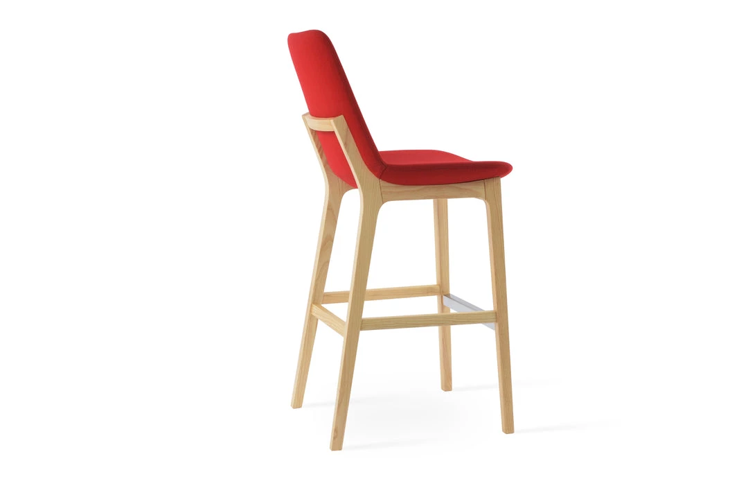 Eiffel Wood is a contemporary stool with a comfortable upholstered seat and backrest on a solid walnut beech. The seat has a steel structure with “S” shape springs for extra flexibility and strength. This steel frame is molded by injecting polyurethane foam. Eiffel seat is upholstered with a removable velcro, enclosed leather, PPM, leatherette, wool as well as Camira organic wool slip cover. Eiffel Wood Stool may be upholstered with variety of other colors as a special order with a minimum of quantity required. The stool is suitable for both residential and commercial use. Eiffel Wood Stool is designed by the sohoConcept team.