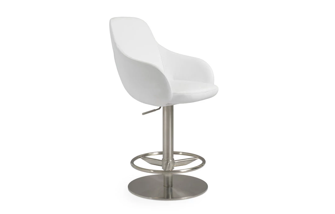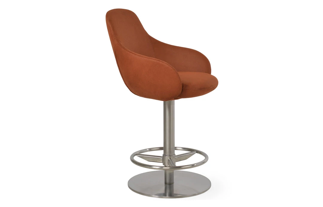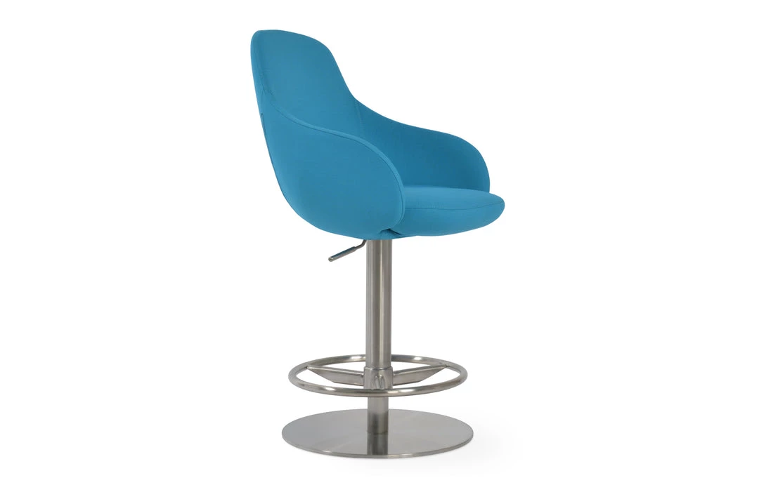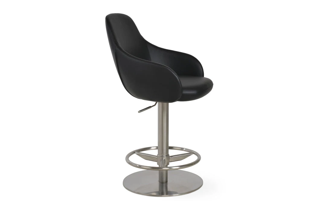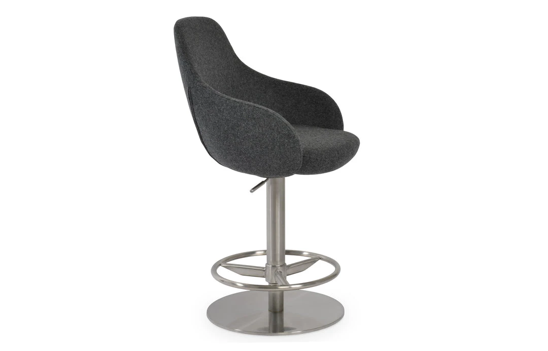Gazel Arm Piston is a unique stool with a comfortable upholstered seat and backrest on an adjustable gas piston base which swivels and also adjusts easily from a counter height to a bar height with a lever that activates the gas piston mechanism. The solid steel round base is available in chrome or stainless steel. The seat has a steel structure with “S” shape springs for extra flexibility and strength. This steel frame is molded by injecting polyurethane foam. Gazel seat is upholstered with a removable zipper enclosed leather,leatherette or wool fabric slip cover that can be changed with professional help. Gazel Piston may be upholstered with variety of other colors as a special order with a minimum quantity required. Gazel Arm Piston is suitable for both residential and commercial use. Gazel Arm Piston is designed by the sohoConcept team.