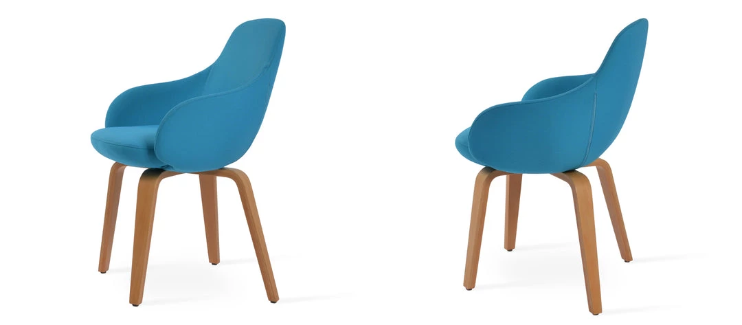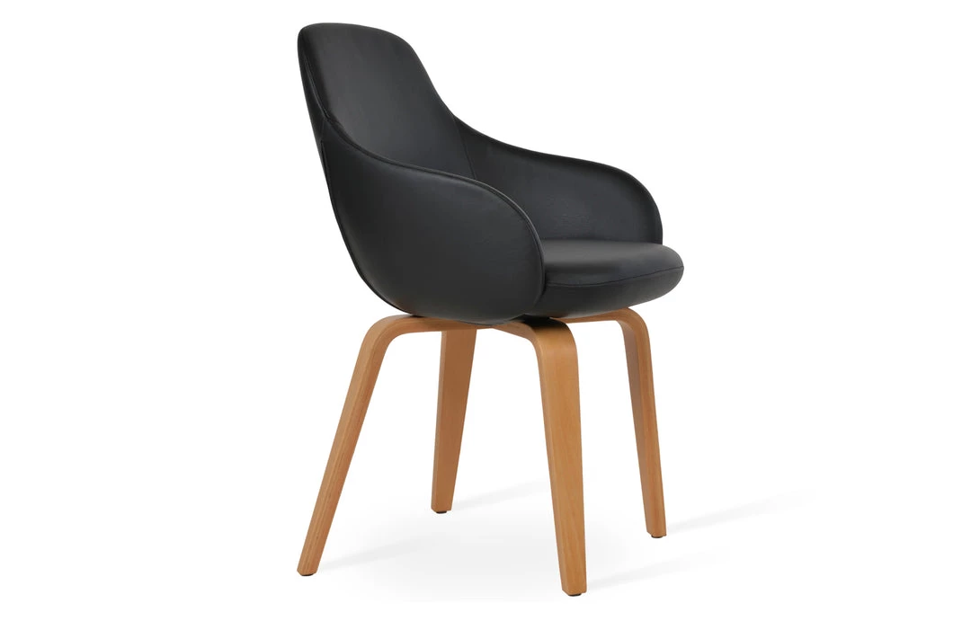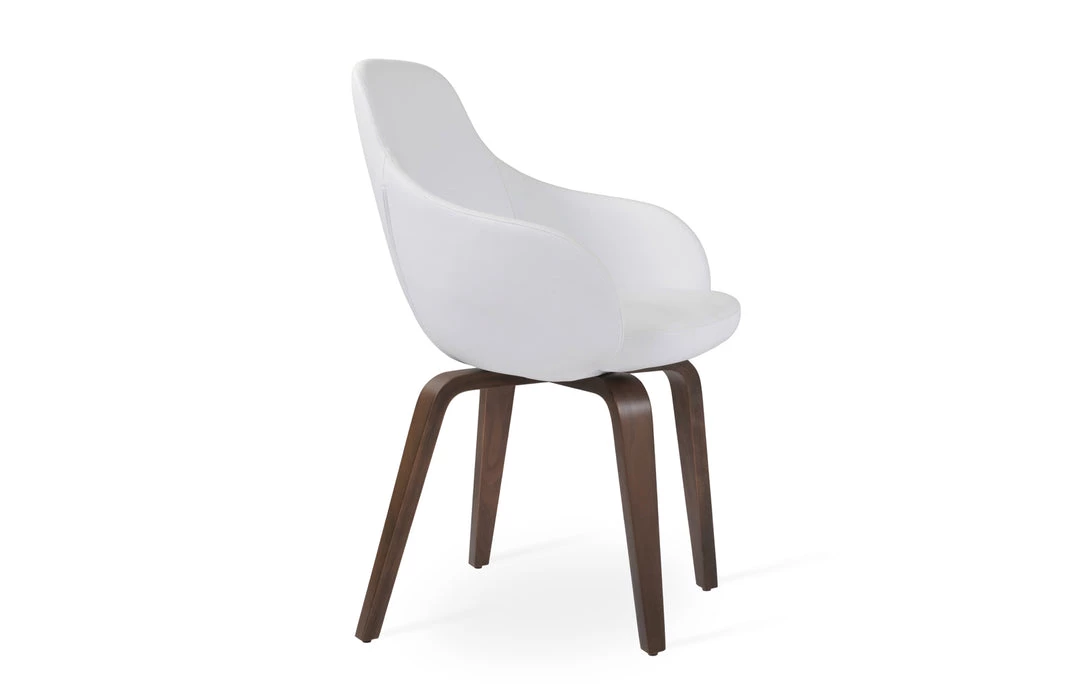 Gazel Arm Plywood is a contemporary dining chair with a comfortable upholstered seat and backrest on plywood legs. Gazel Arm Plywood has wood legs available in walnut finish. The seat has a steel structure with “S” shape springs for extra flexibility and strength. This steel frame is molded by injecting polyurethane foam. Gazel seat is upholstered with a removable zipper enclosed leather,leatherette or wool fabric slip cover that can be changed with professional help. Gazel Arm Plywood may be upholstered with variety of other colors as a special order with a minimum of quantity required. This contemporary chair is suitable for both residential and commercial use. Gazel Arm Plywood is designed by Tayfur Ozkaynak.