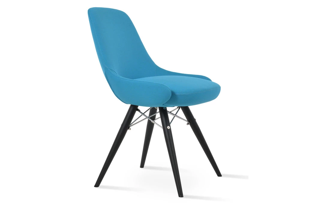 Gazel MW is a contemporary dining chair with a comfortable upholstered seat and backrest on veneer steel dowel legs available in black powder, natural as well as stainless steel finishes. Each leg is tipped with a plastic glide screwed into the foot. The seat has a steel structure with “S” shape springs for extra flexibility and strength. This steel frame molded by injecting polyurethane foam. Bottega seat is upholstered with a removable zipper enclosed leather, leatherette or wool fabric slip cover. Gazel MW may be upholstered with variety of other colors as a special order with a minimum of quantity required. This contemporary chair is suitable for both residential and commercial use. Gazel MW is designed by Tayfur Ozkaynak.