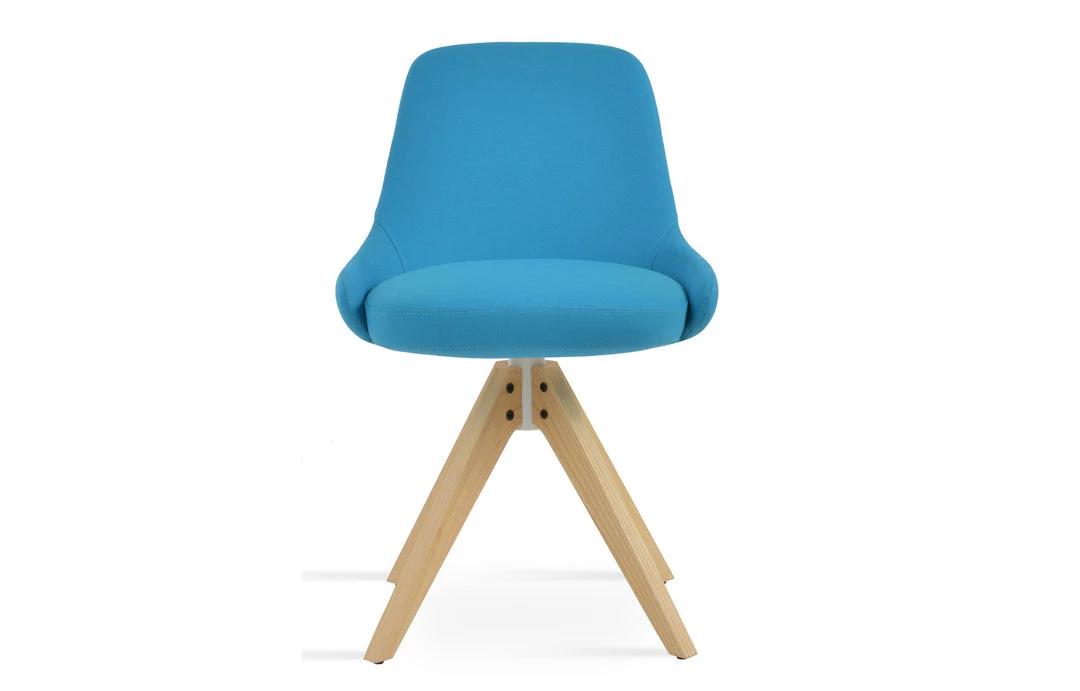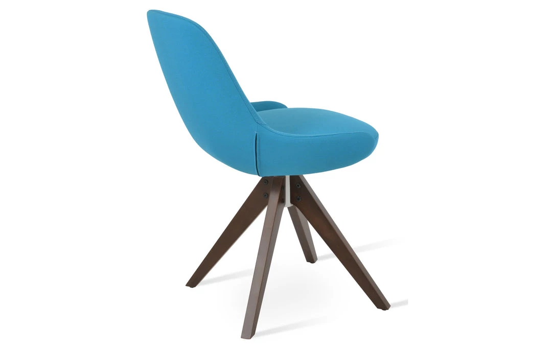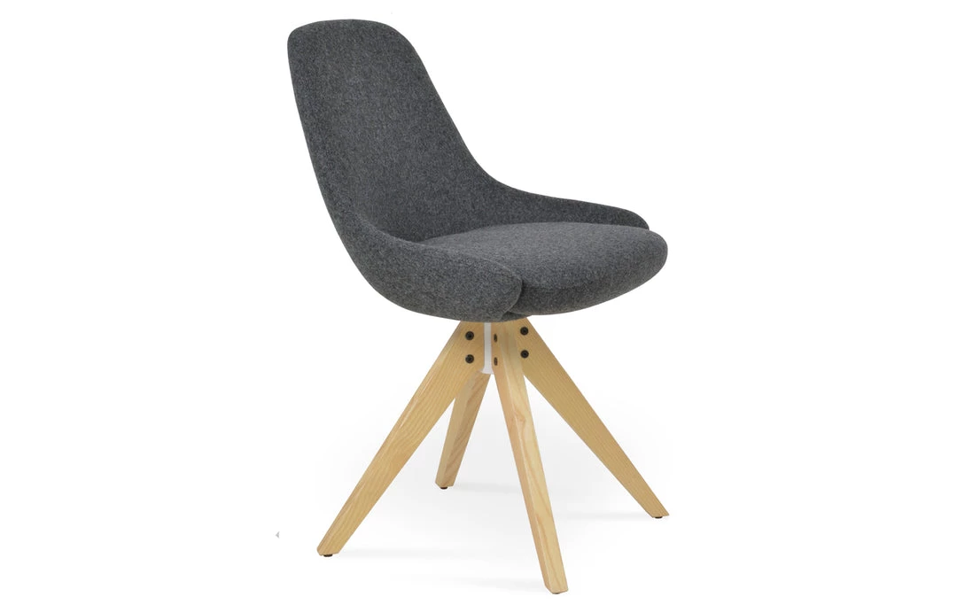 Gazel Pyramid Swivel is a contemporary dining chair with a comfortable upholstered seat and backrest on swivel wood finish legs. The legs may be ordered in different finished as a special order. The seat has a steel structure with “S” shape springs for extra flexibility and strength. This steel frame is molded by injecting polyurethane foam. Gazel seat is upholstered with a removable zipper enclosed leather,leatherette or wool fabric slip cover that can be changed with professional help. Gazel Wood may be upholstered with variety of other colors as a special order with a minimum of quantity required. This contemporary chair is suitable for both residential and commercial use. Gazel Wood is designed by Tayfur Ozkaynak.