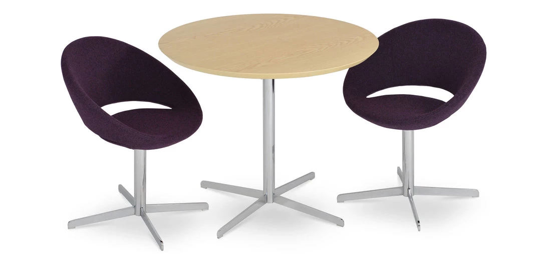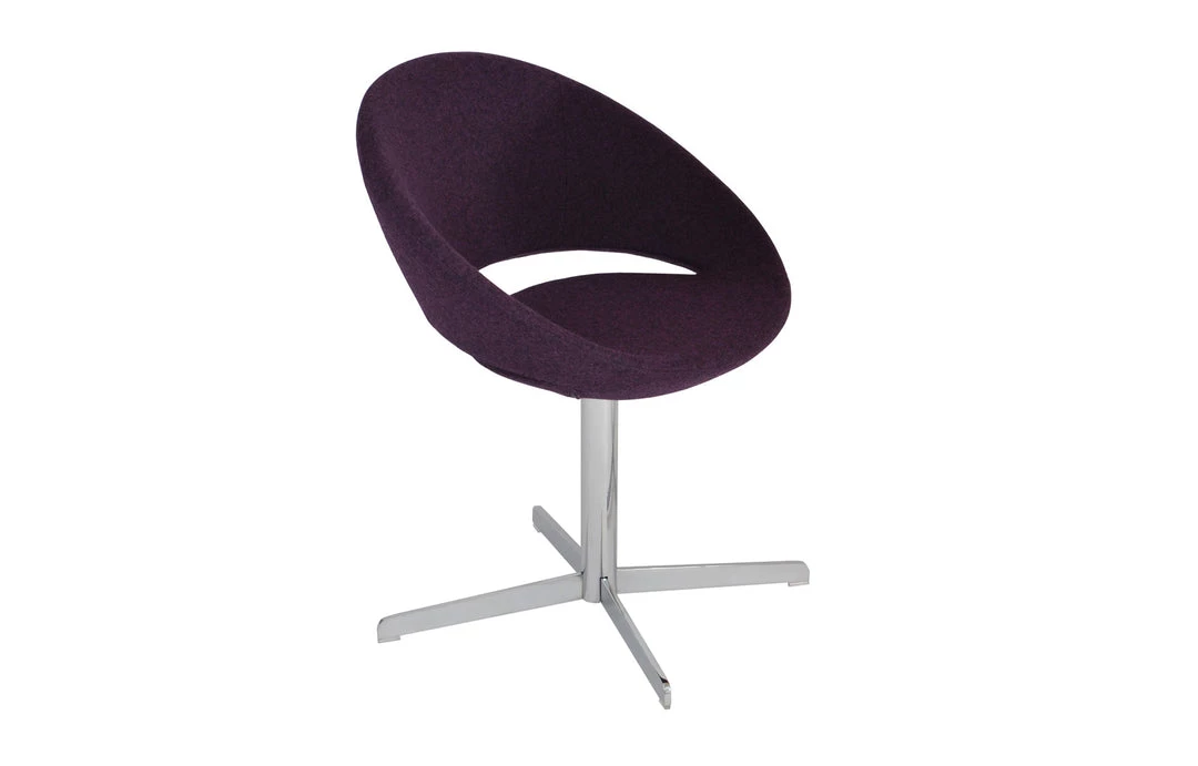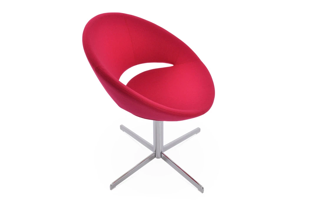 Crescent 4 Star is a contemporary dining chair with a comfortable upholstered seat and backrest on a 4 star matt brushed nickel base. The chrome base is available with automatic memory swivel option that is very convenient. The seat has a steel structure with “S” shape springs for extra flexibility and strength. This steel frame molded by injecting polyurethane foam. Crescent seat is upholstered with a removable zipper enclosed leather, PPM, leatherette or wool fabric slip cover that can be changed with professional help. Crescent 4 Star may be upholstered with variety of other colors as a special order with a minimum quantity requirement. The chair is suitable for both residential and commercial use. Crescent 4 Star is designed by Tayfur Ozkaynak.