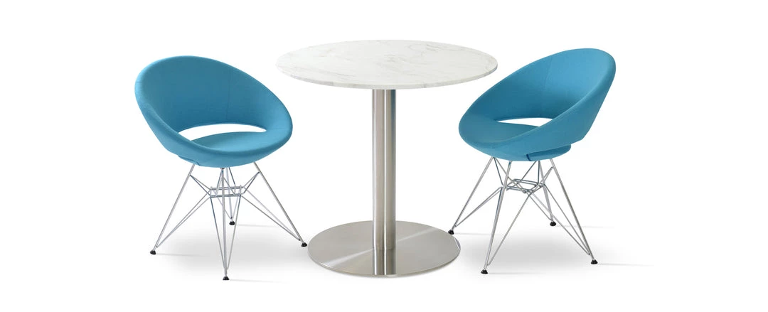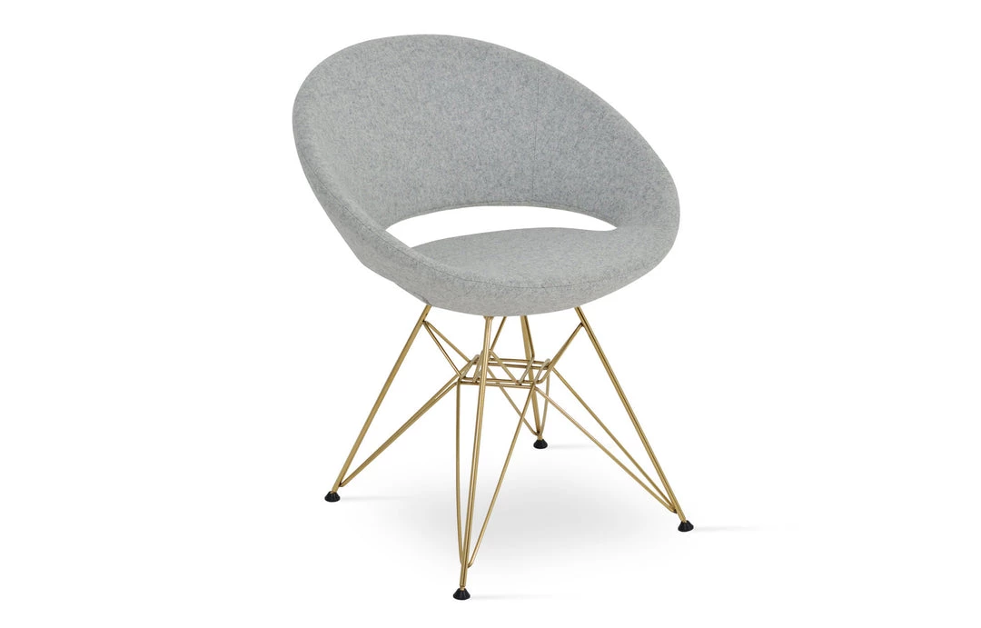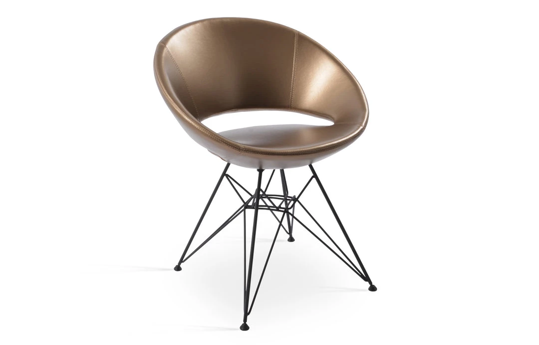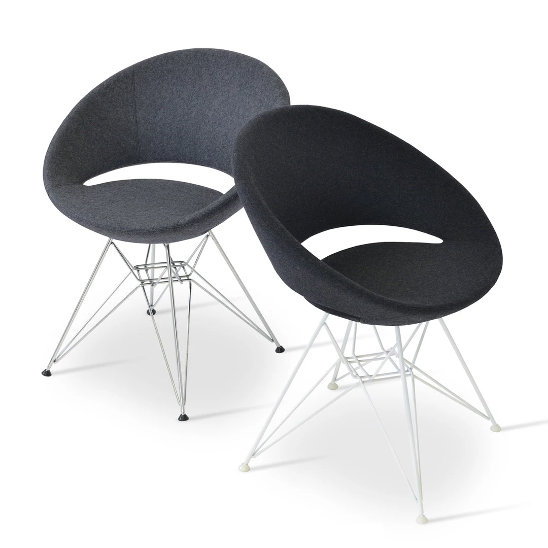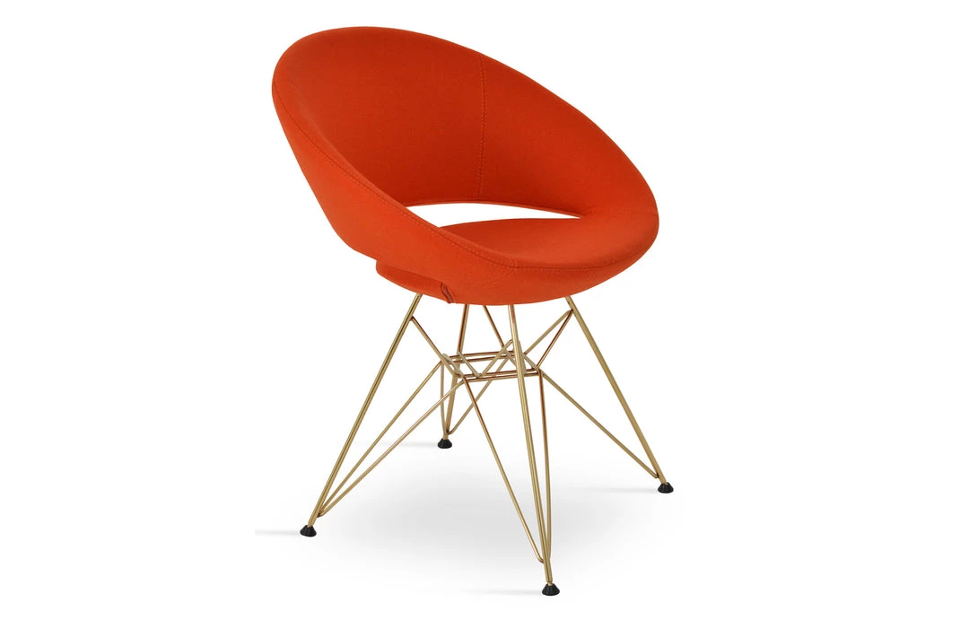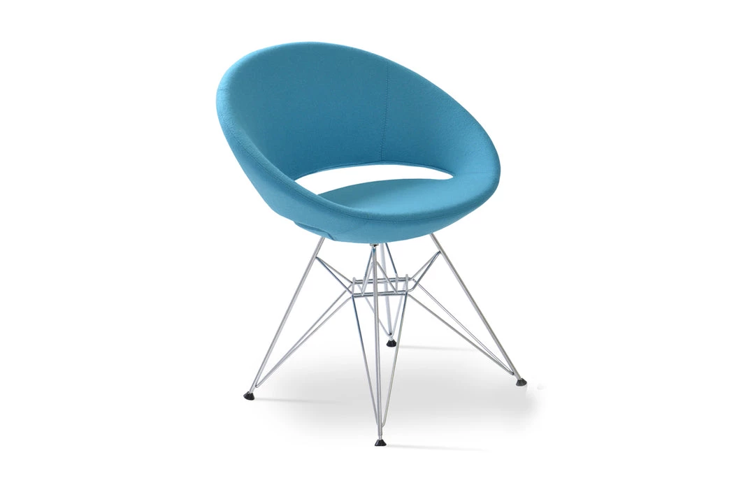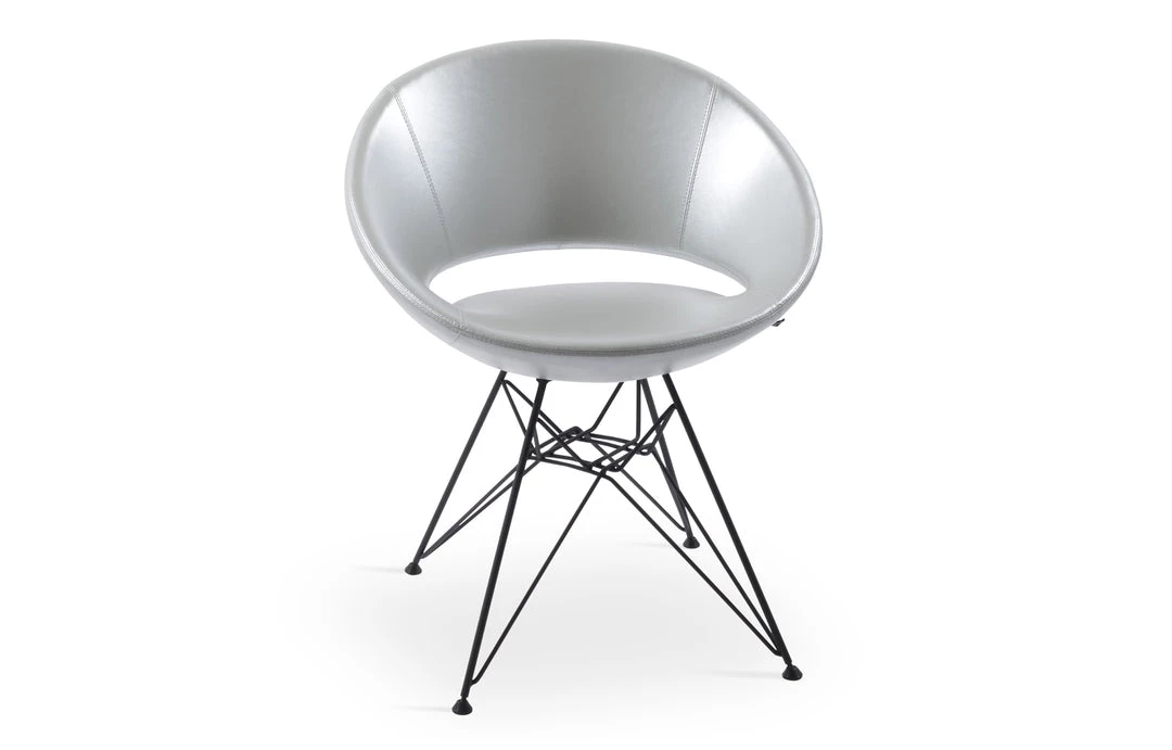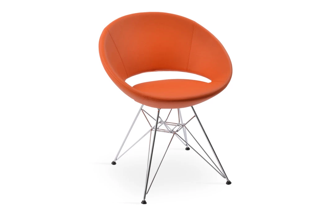 Crescent Tower is a contemporary dining chair with a comfortable upholstered seat and backrest on chrome steel base as well as brushed black, white, red and gold options. Each leg is tipped with a plastic glide embedded into the metal wire. The seat has a steel structure with “S” shape springs for extra flexibility and strength. This steel frame molded by injecting polyurethane foam. Crescent seat is upholstered with a removable zipper enclosed leather, PPM, leatherette or wool fabric slip cover. The chair is suitable for both residential and commercial use. Crescent Tower is designed by sohoConcept team.