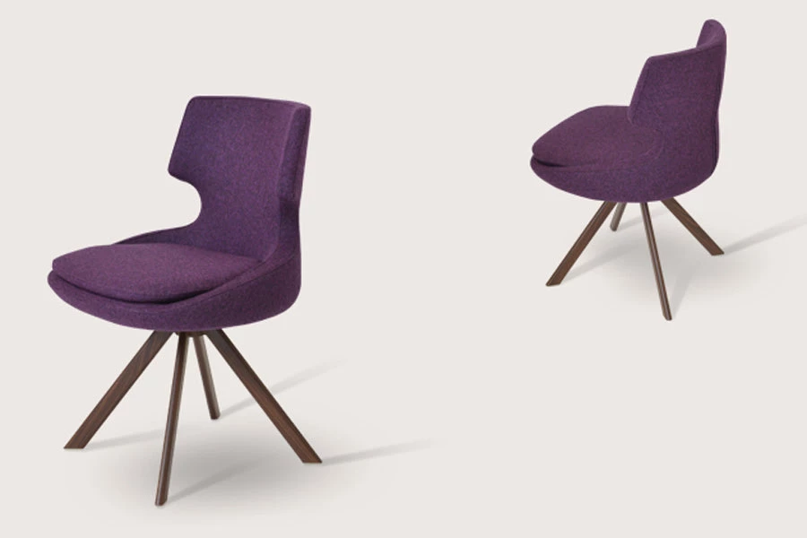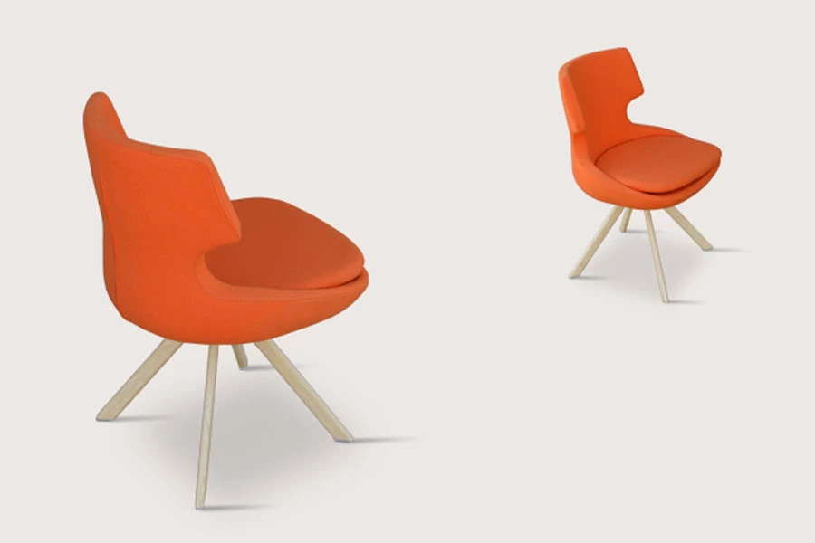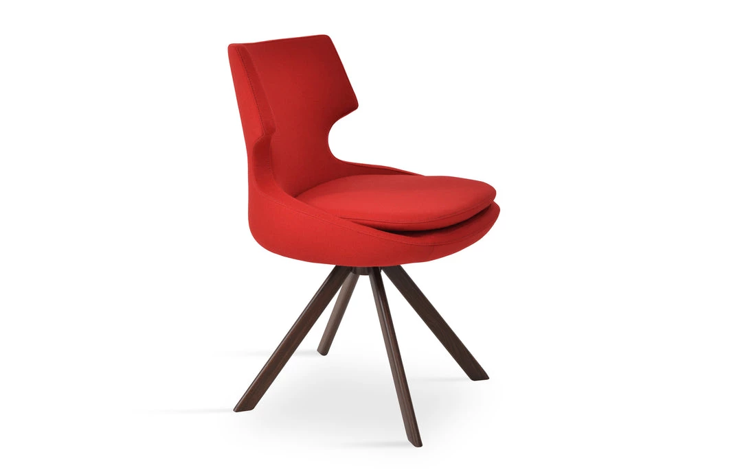 Patara Sword is a distinctive dining chair with a comfortable upholstered seat and back rest on natural and walnut veneer steel base. Its padded removable seat cushion provides extra comfort to the user. The seat has a steel structure with “S” shape springs for extra flexibility and strength. This steel frame is molded by injecting polyurethane foam. Patara Sword is suitable for both residential and commercial use.
