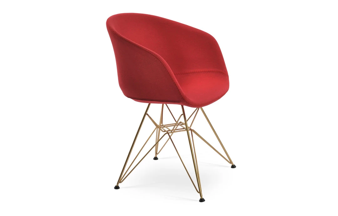 Tribeca Tower is a contemporary dining chair with a comfortable upholstered seat and backrest on chrome steel base as well as brushed black, white, red and gold options. Each leg is tipped with a plastic glide embedded into the metal wire. The seat has a steel structure with “S” shape springs for extra flexibility and strength. This steel frame molded by injecting polyurethane foam. Tribeca seat is upholstered with a removable zipper enclosed leather, PPM, leatherette or wool fabric slip cover. The chair is suitable for both residential and commercial use. Tribeca Tower is designed by sohoConcept team.
