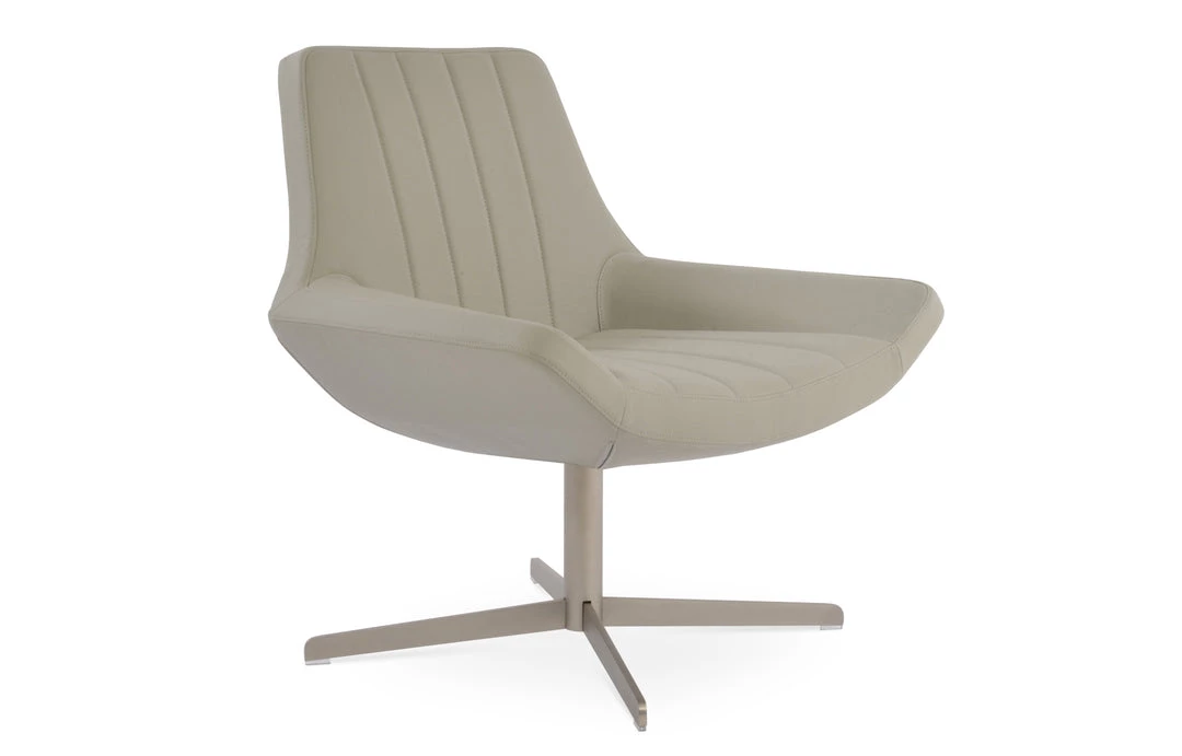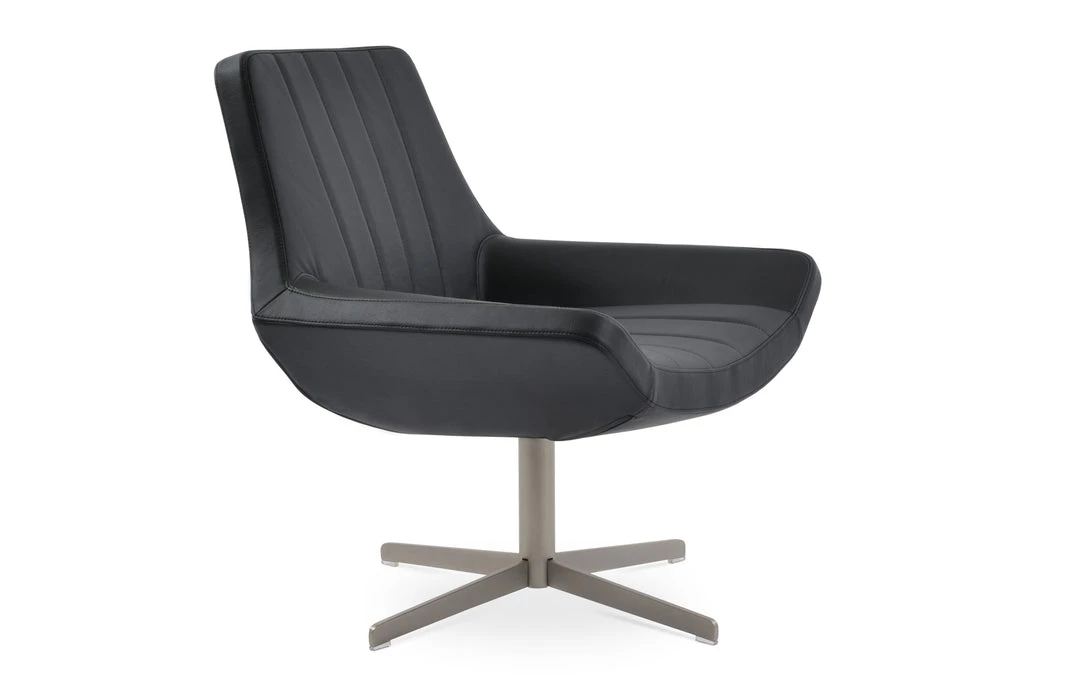 Bellagio 4 Star is a contemporary dining chair with a comfortable upholstered seat and backrest on a 4 star matt brushed nickel base. The chrome base is available with automatic memory swivel option that is very convenient. The seat has a steel structure with “S” shape springs for extra flexibility and strength. This steel frame molded by injecting polyurethane foam. Bellagio seat is upholstered with a removable zipper enclosed leather, PPM, leatherette or wool fabric slip cover that can be changed with professional help. Bellagio 4 Star may be upholstered with variety of other colors as a special order with a minimum quantity requirement. The chair is suitable for both residential and commercial use. Bellagio 4 Star is designed by Tayfur Ozkaynak.