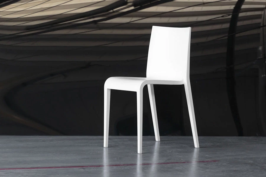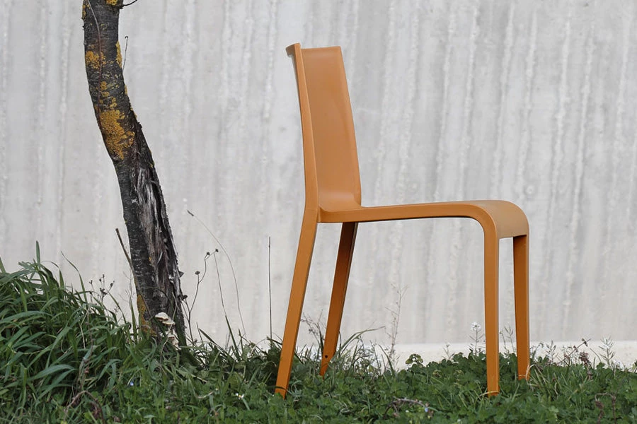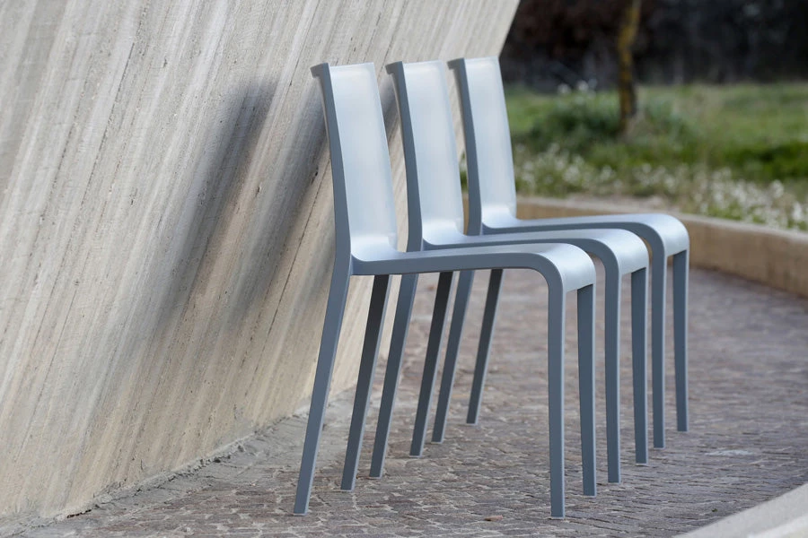 Nassau is a one-piece chair in polypropylene reinforced with glass fibre and made using the injected air-moulding technology that makes it sturdy and light at the same time. Rounded lines, a simple design and curvaceous shapes identify its character. The ergonomic backrest with its glossy finish on the outer side is contoured by an imaginary frame that enhances its importance. The seat emerging and developing from the backrest creates a fluid and continuous line. Available in 10 different colours (white, light blue, squirrel grey, grass green, dove grey, ochre, marsala, mocha, anthracite and black) Nassau is conceived for an indoor and outdoor use. The chair with its transparent plastic gliders is stackable by 5 pieces to facilitate handling and stocking.