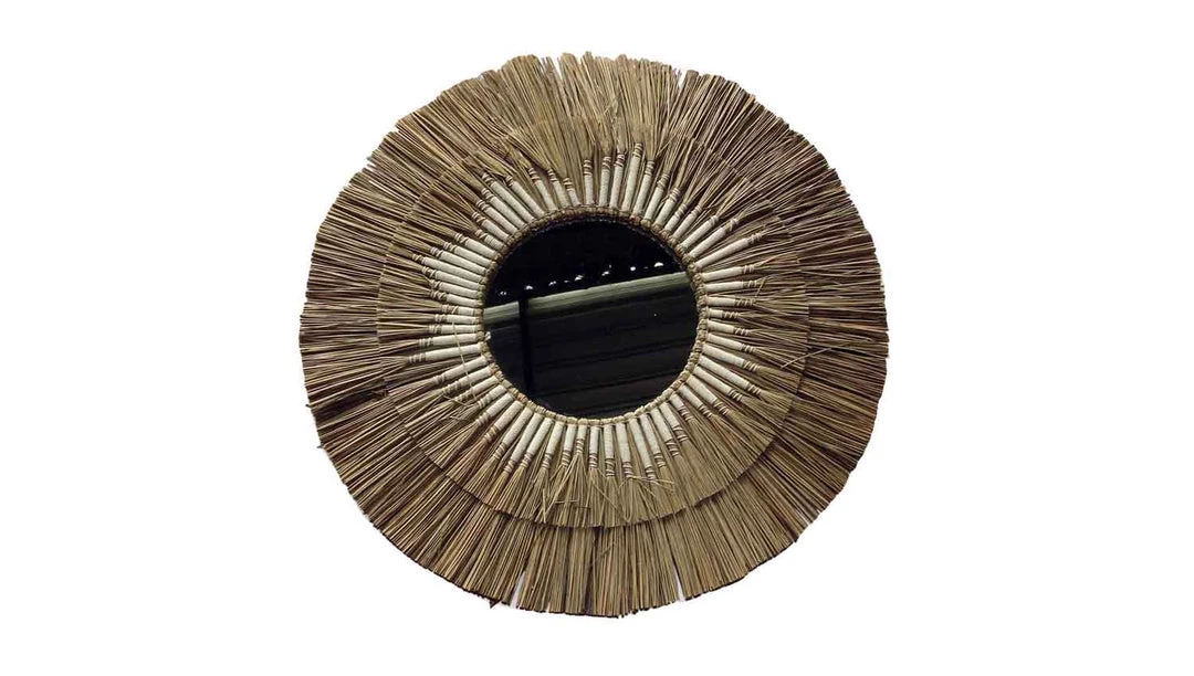 Intricately handcrafted with natural mendong for a contemporary appearance, this circle mirror is a perfect piece to add a modern ornamental touch to any interior.