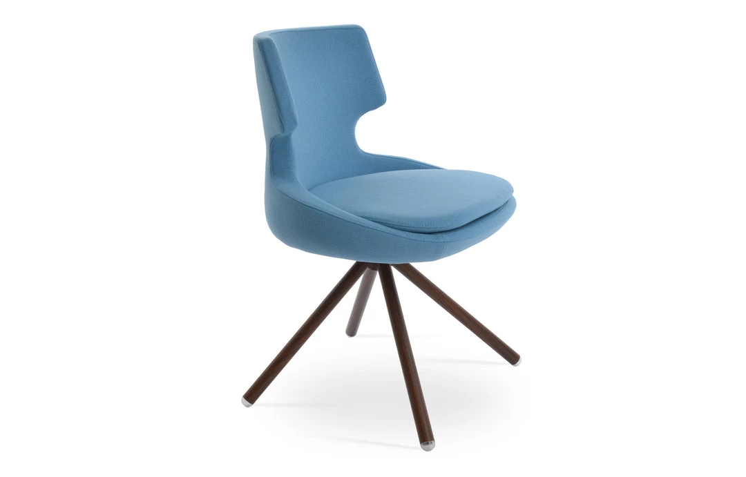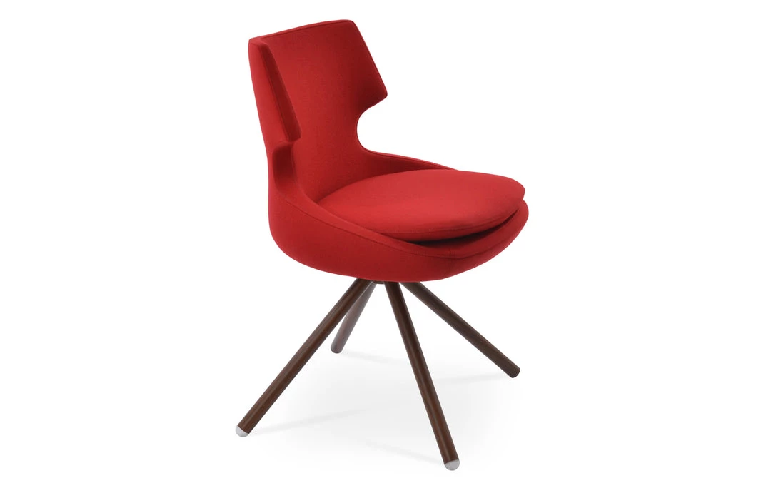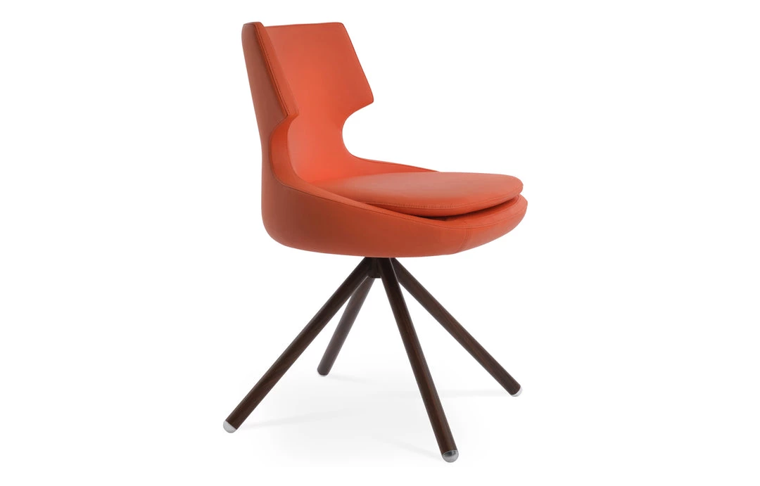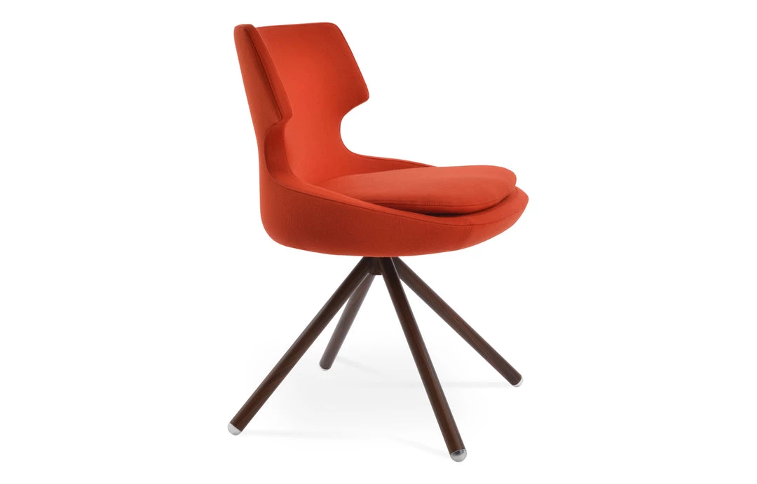 Patara Stick is a distinctive dining chair with a comfortable upholstered seat and back rest on natural and walnut veneer steel base. Its padded removable seat cushion provides extra comfort to the user. The seat has a steel structure with “S” shape springs for extra flexibility and strength. This steel frame is molded by injecting polyurethane foam. Patara Stick is suitable for both residential and commercial use.