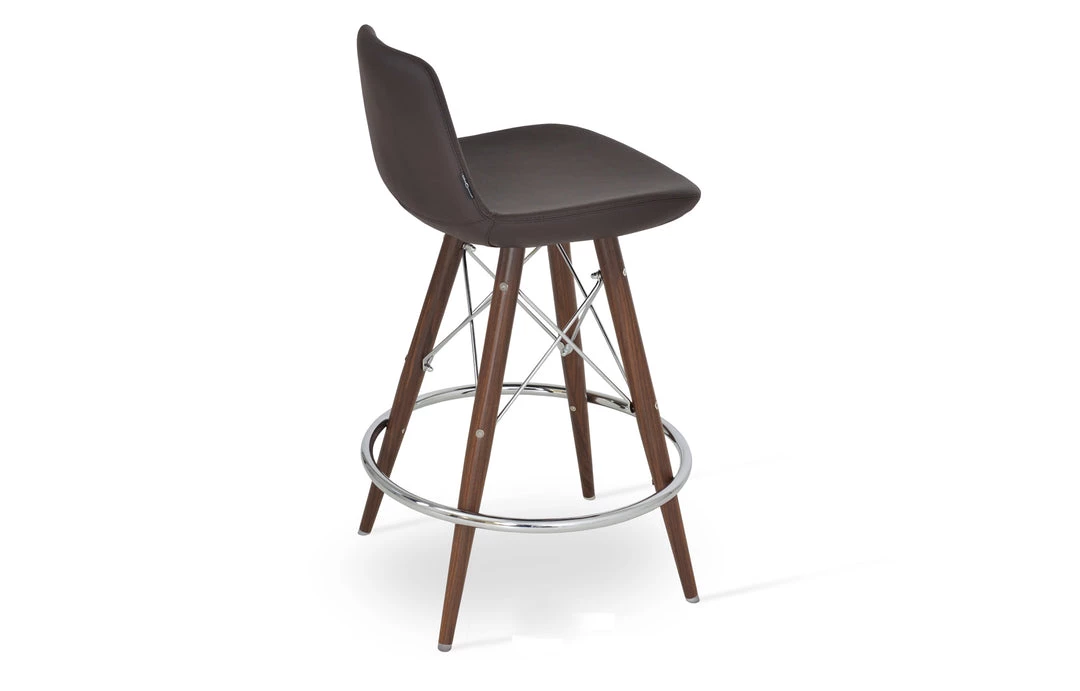 Pera MW stool is a unique stool with a comfortable upholstered seat and backrest on a powder-coated steel frame. Each leg is tipped with a plastic glide inserted to the foot. With its chromed steel tubular footrests, it becomes an ideal solution for kitchen and bar counters. The footrests are fixed inside the four-leg frame. The seat has a steel structure with “S” shape springs for extra flexibility and strength. This steel frame molded by injecting polyurethane foam. Pera seat is upholstered with a removable velcro enclosed leather, PPM or wool fabric slip cover. The stool is suitable for both residential and commercial use and can be ordered as counter or bar stool. Pera MW stool are available with swivel seat options too. Pera MW stool is designed by sohoConcept team.
