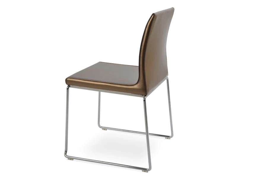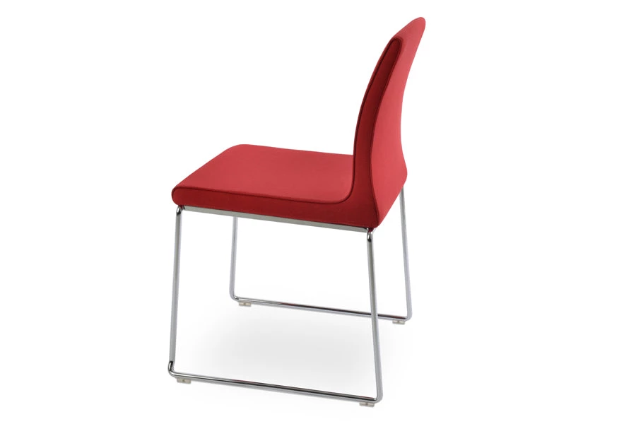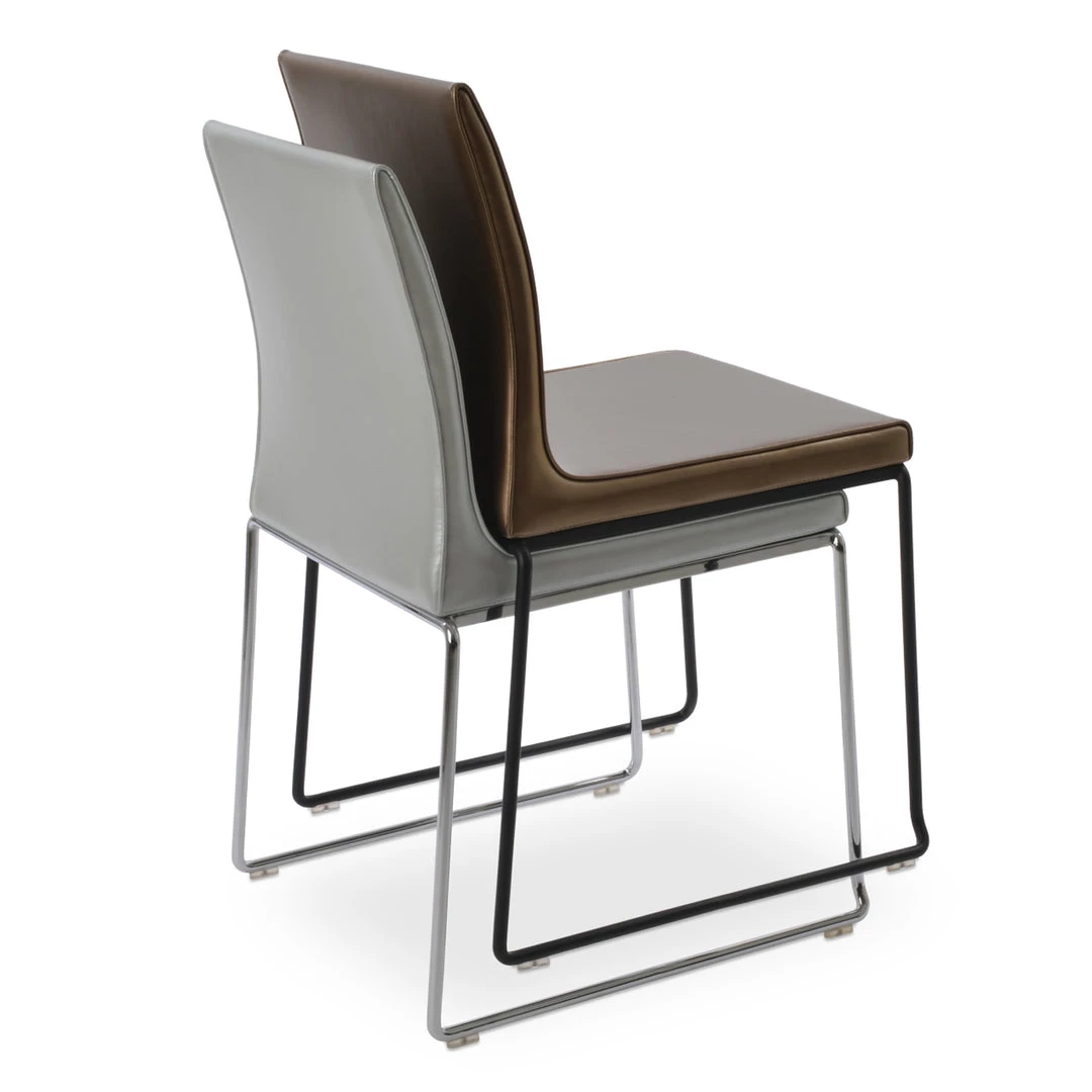 Polo Stackable is a contemporary dining chair with a comfortable upholstered seat and backrest with steel tube frame structure wrapped by regenerated (Bonded) leather. Polo Stackable is built on chrome plated steel stackable base that is also available in black powder finish and stainless steel. Its sturdiness sled base that moves very smoothly on carpets has the chair especially preferred for lounge, restaurants, and other public areas. Polo Stackable is suitable for both residential and commercial use. Polo Stackable is designed by Tayfur Ozkaynak.