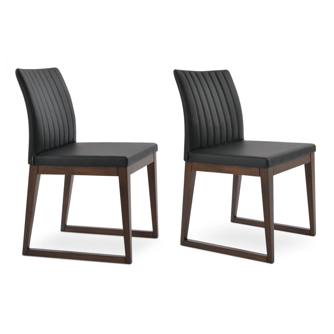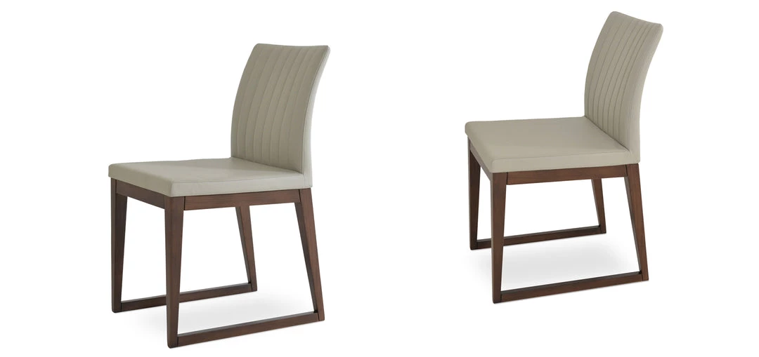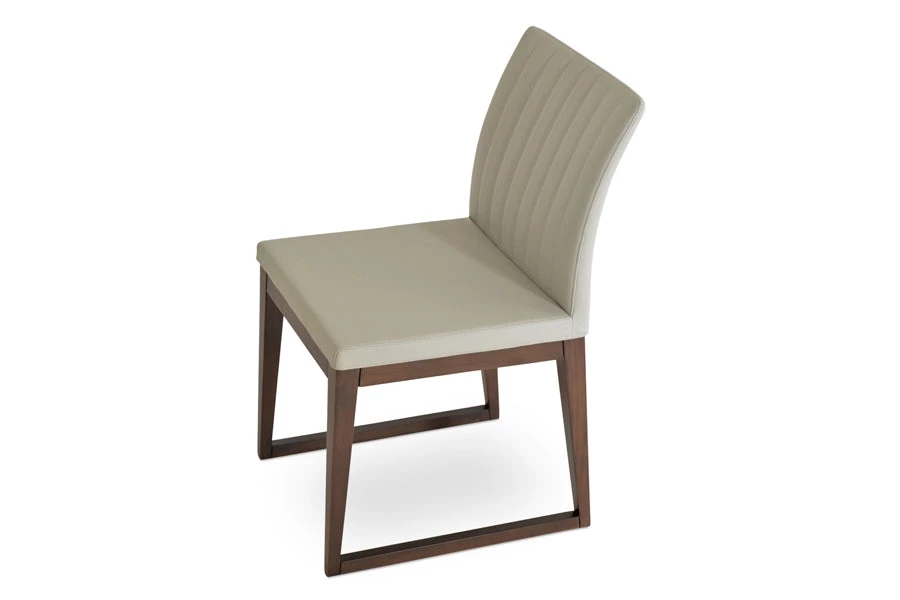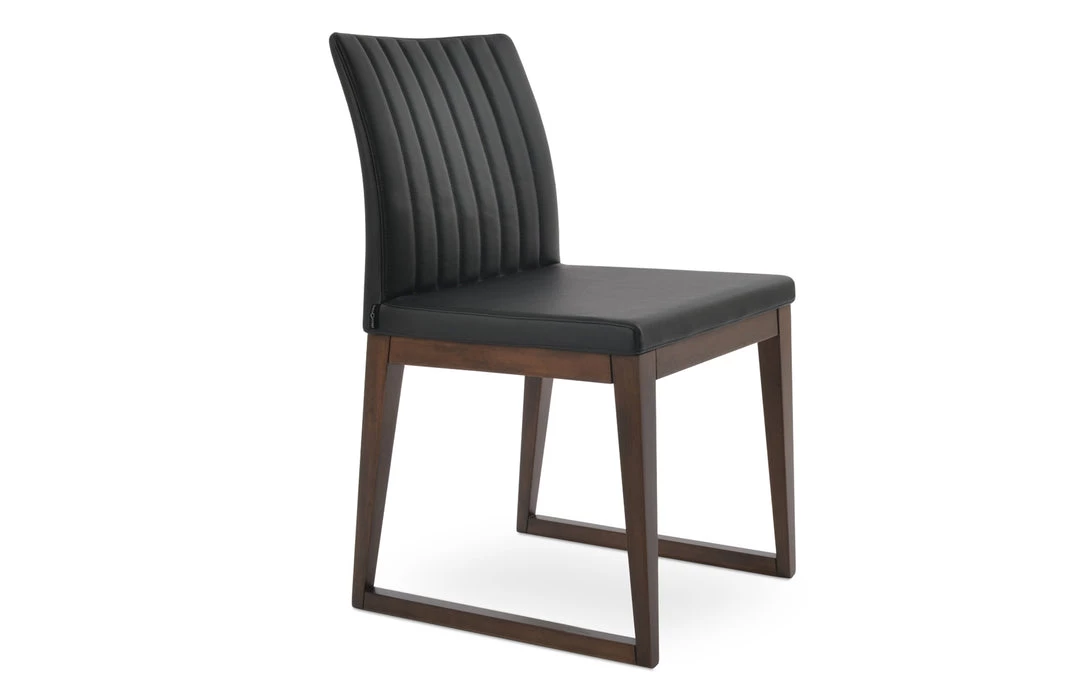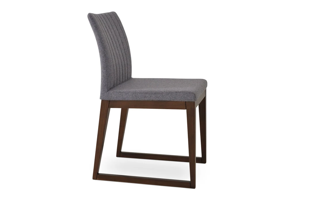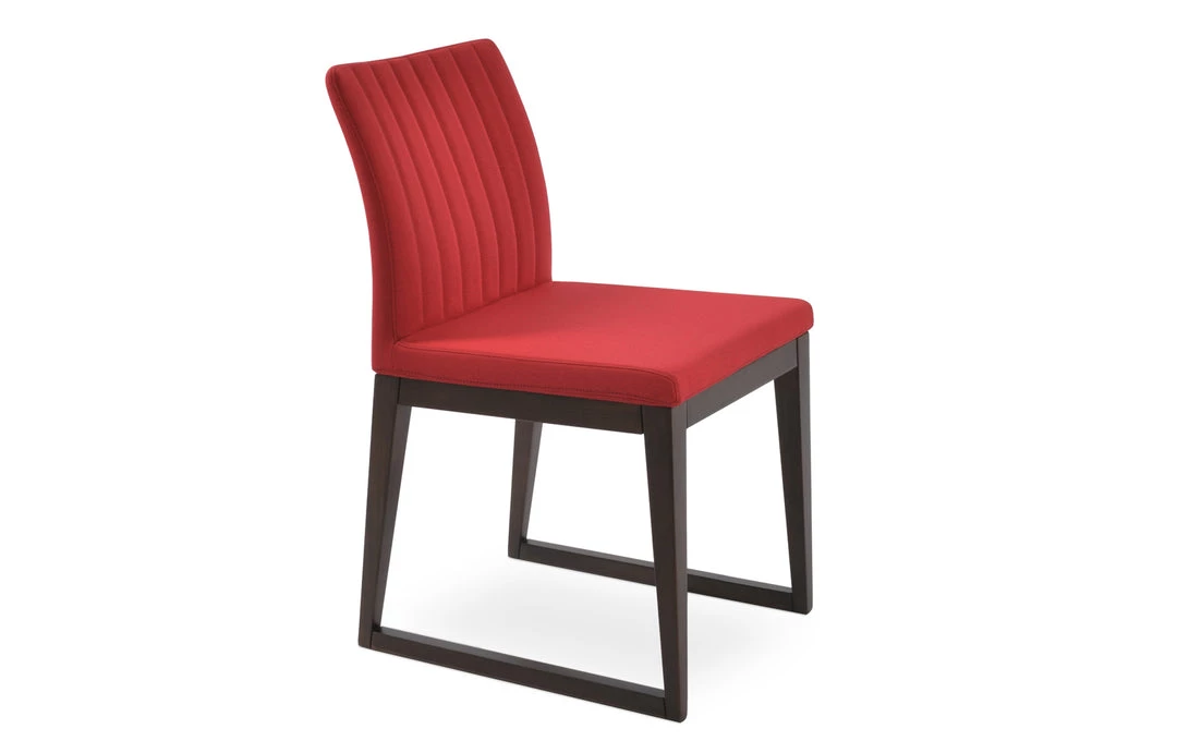 Zeyno Sled Wood is a contemporary dining chair with a comfortable upholstered seat and backrest on solid beech walnut finish sled base. The seat has a steel structure with “S” shape springs for extra flexibility and strength. This steel frame is moulded by injecting polyurethane foam. Zeyno Sled Wood seat is upholstered with a removable velcro enclosed fabric, leatherette, PPM, leather or wool fabric slip cover. Other colors are available as a special order with a minimum quantity required. The chair is suitable for both residential and commercial use. It’s sturdiness sled base that moves very smoothly on carpets has the chair especially preffered for lounge, restaurants, and other public areas. Zeyno Sled Wood is designed by Tayfur Ozkaynak.