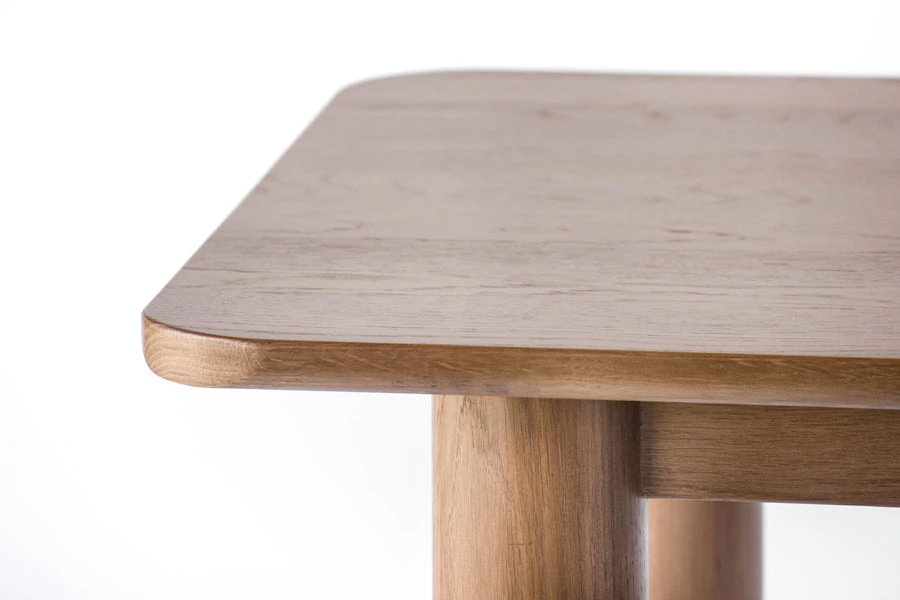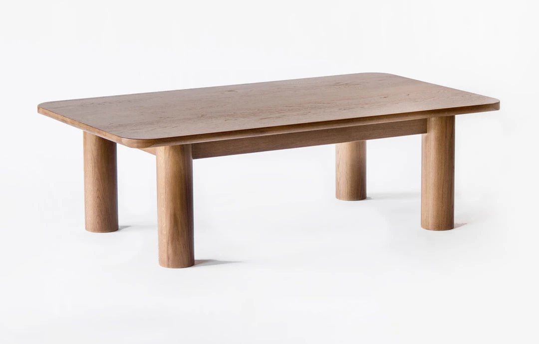 The Arc coffee table features the wide cylindrical legs characteristic of the Arc series. All solid white oak and traditional joinery. Please note that we make each piece by hand, and every tree is different, so you’ll see slight variations in color and pattern. These aren’t machine made, and we use solid wood, not veneer or engineered wood.