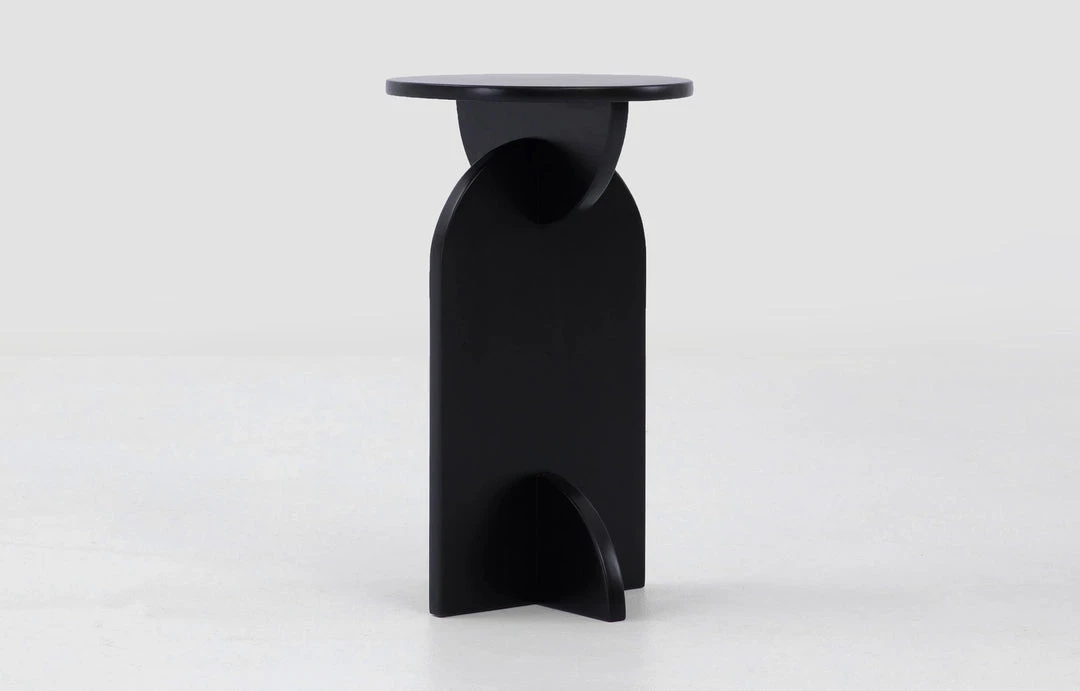 A lunar inspired side table, curves are the focus here. Put it by your sofa, accent chair, or in its own little corner. Maybe put a few things on it. Please note that we make each piece by hand, and every tree is different, so you’ll see slight variations in color and pattern. These aren’t machine made, and we use solid wood, not veneer or engineered wood.