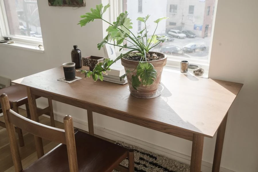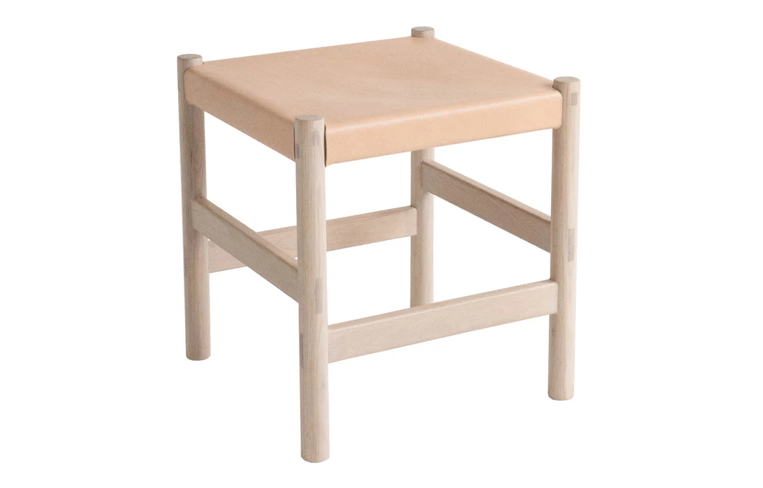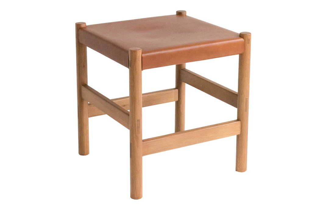 A simple, versatile stool, designed to function as both accent and traditional seating. Its simple silhouette belies intricate construction, with 10 through-tenon joints used in the piece. The vegetable tanned leather is from a family-run Italian tannery and will patina with age.