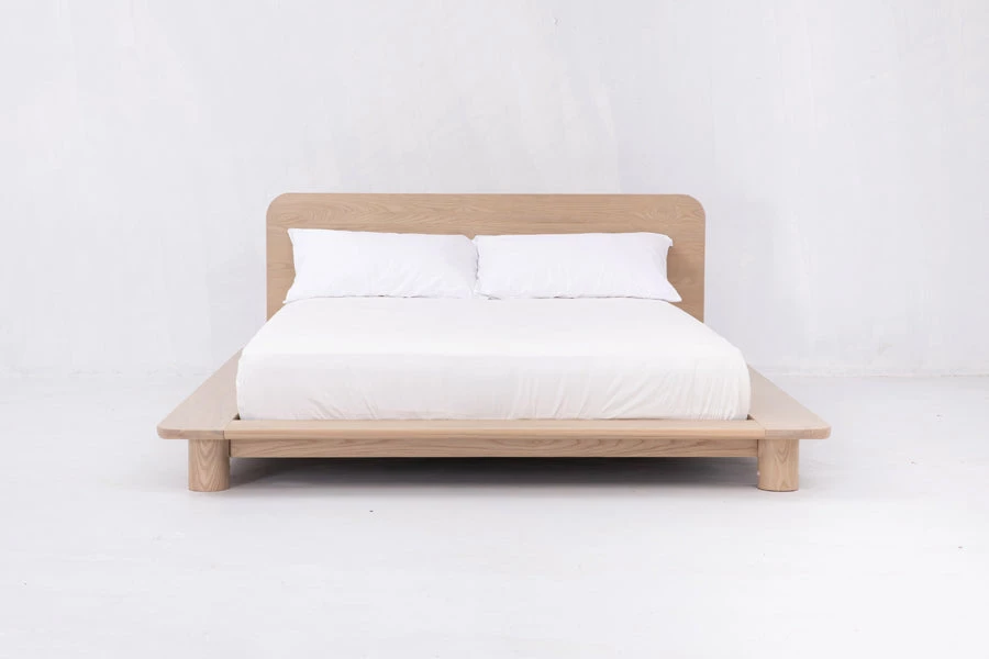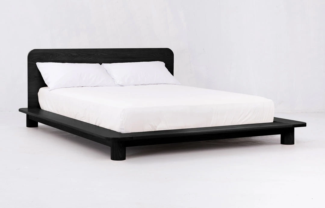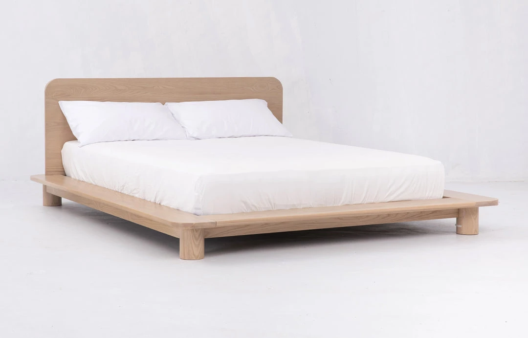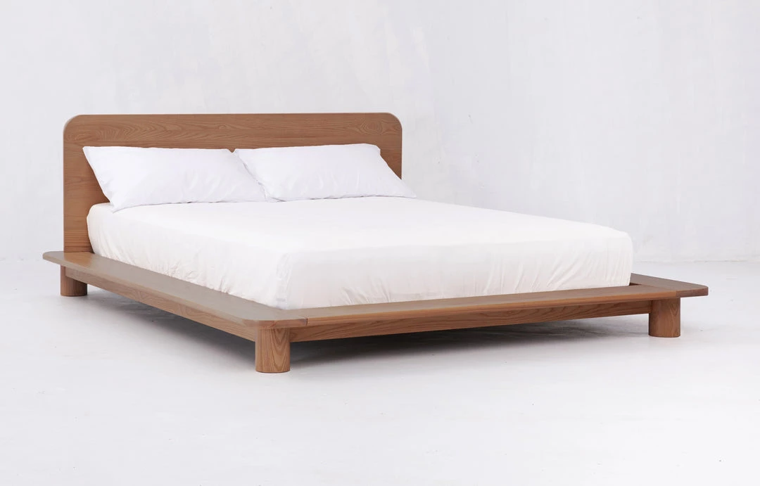 A platform bed with a headboard: the platforms to put your stuff on and a headboard to lean against. We’ve been meaning to do a platform bed for a while and finally have these two out. Couldn’t be happier with how they turned out. Please note that we make each piece by hand, and every tree is different, so you’ll see slight variations in color and pattern. These aren’t machine made, and we use solid wood, not veneer or engineered wood.