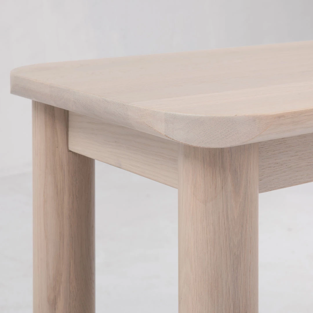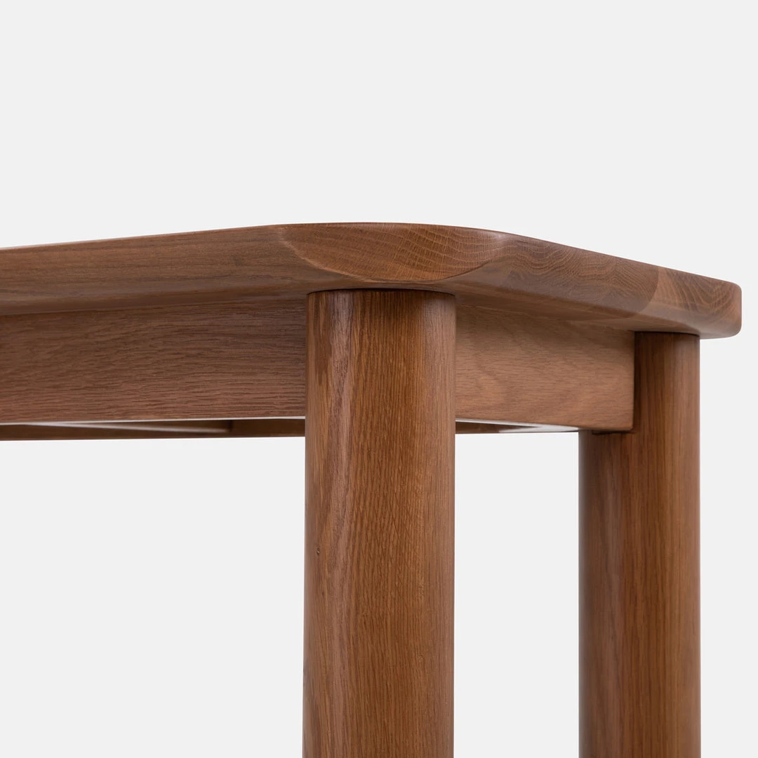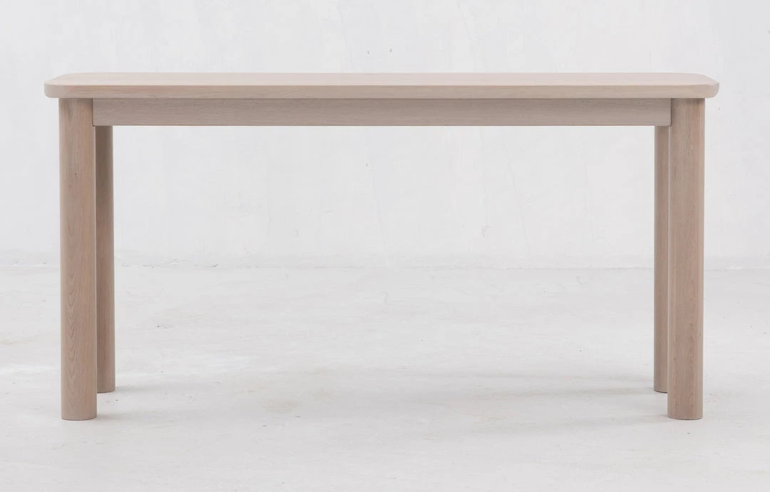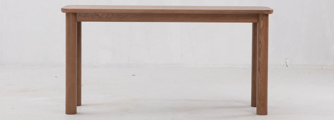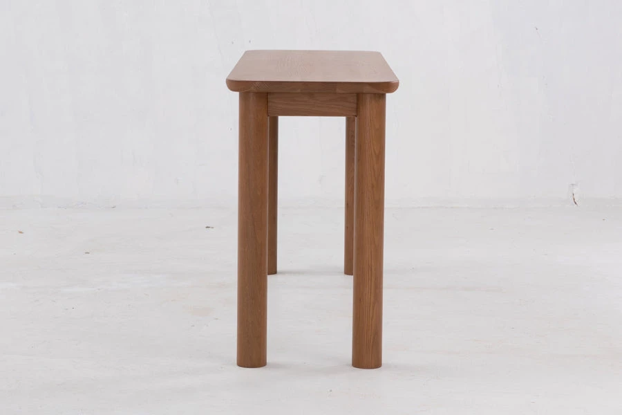 The Arc console table features thick legs and rounded edges. Our first console table, I know it’s been a while for us to get one out. Pretty happy with how it’s turned out. It’s a versatile console designed to age beautifully. Please note that we make each piece by hand, and every tree is different, so you’ll see slight variations in color and pattern. These aren’t machine made, and we use solid wood, not veneer or engineered wood.