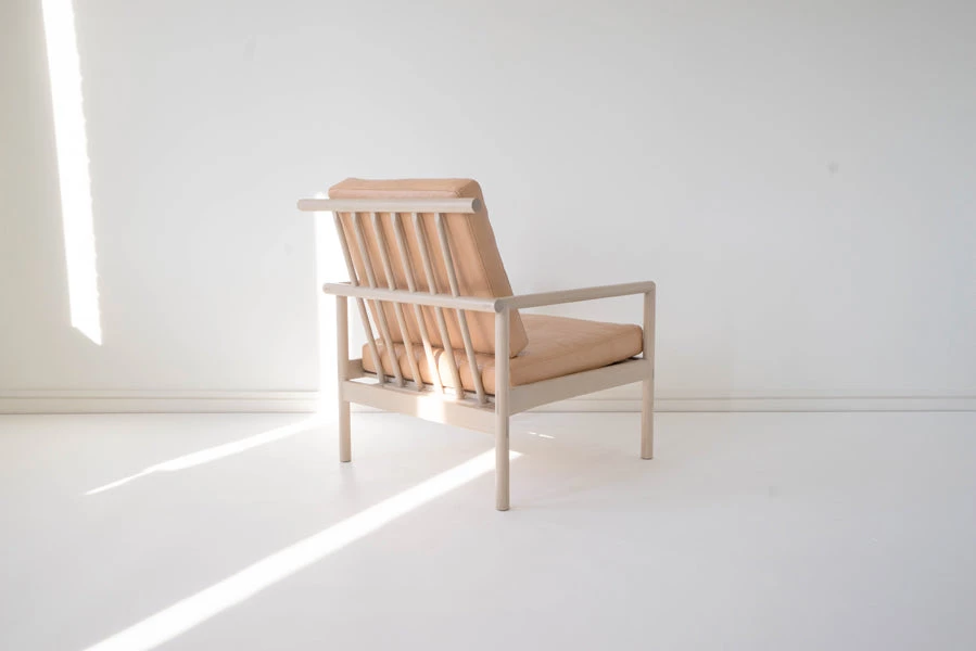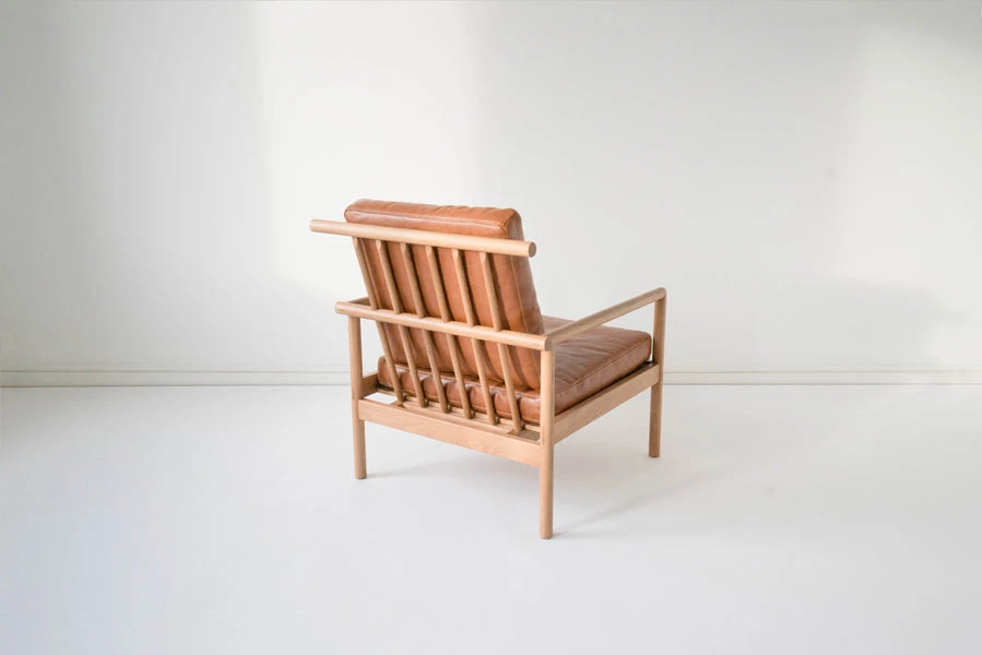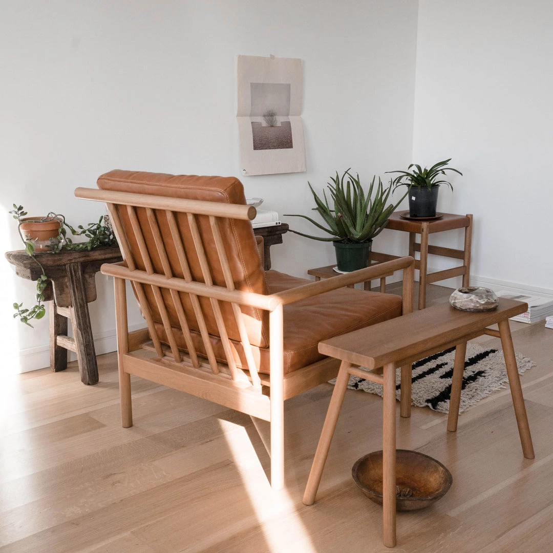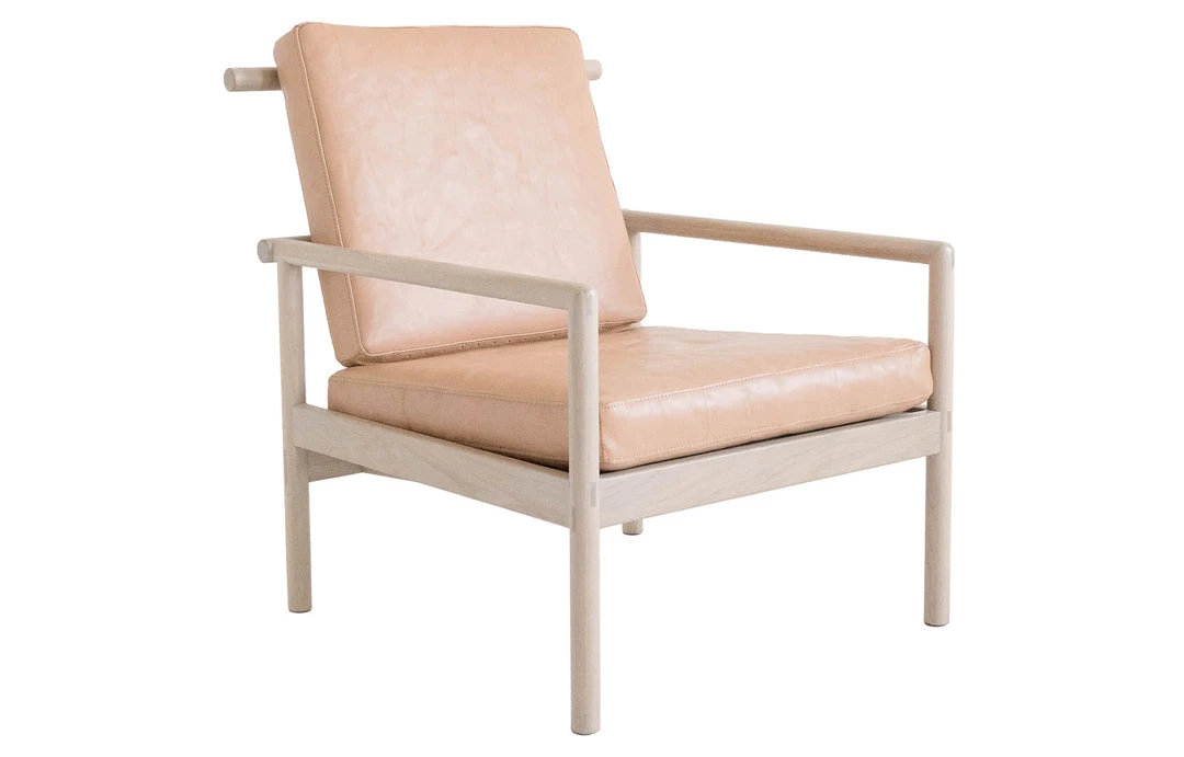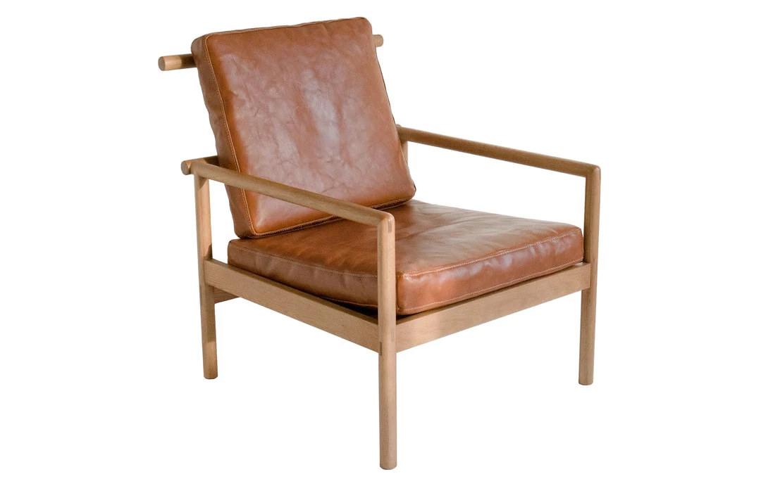 The tenth design iteration of this horned chair. The vegetable tanned leather are from an Italian, family-run tannery and will patina with use. Handcrafted from solid white oak using traditional joinery techniques, the chair includes exposed joinery throughout.