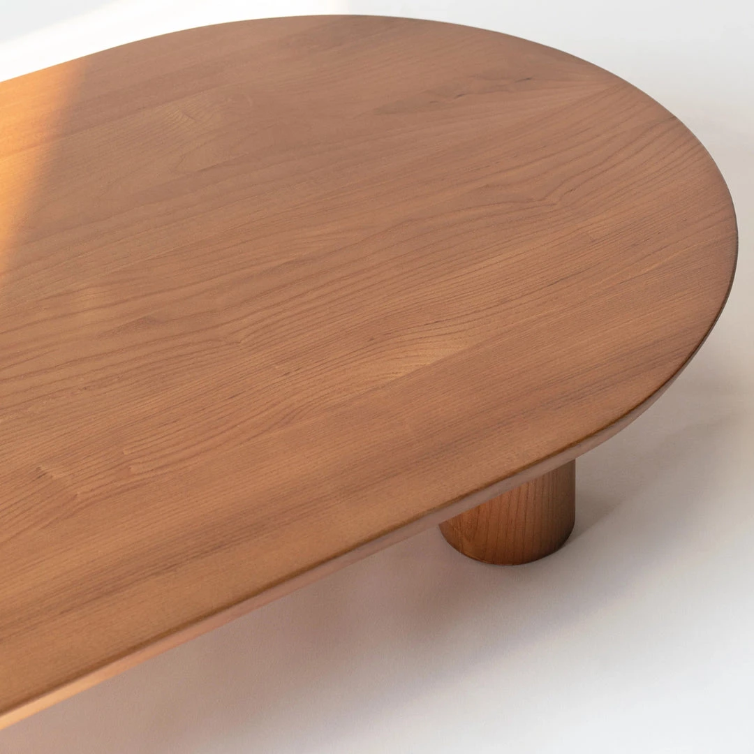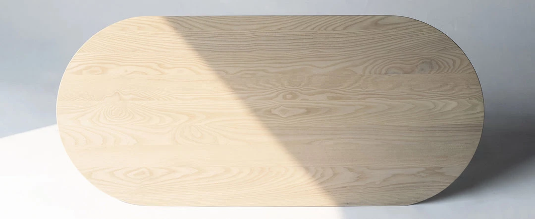 The Ovie coffee table is an ovular coffee table made from solid American white ash, handcrafted using traditional joinery, and finished in Tenna oil. Designed with a low room setup in mind, the table is influenced by the psychological impact of lowering the furniture and arrangements of the living room. Please note that we make each piece by hand, and every tree is different, so you’ll see slight variations in color and pattern. These aren’t machine made, and we use solid wood, not veneer or engineered wood.