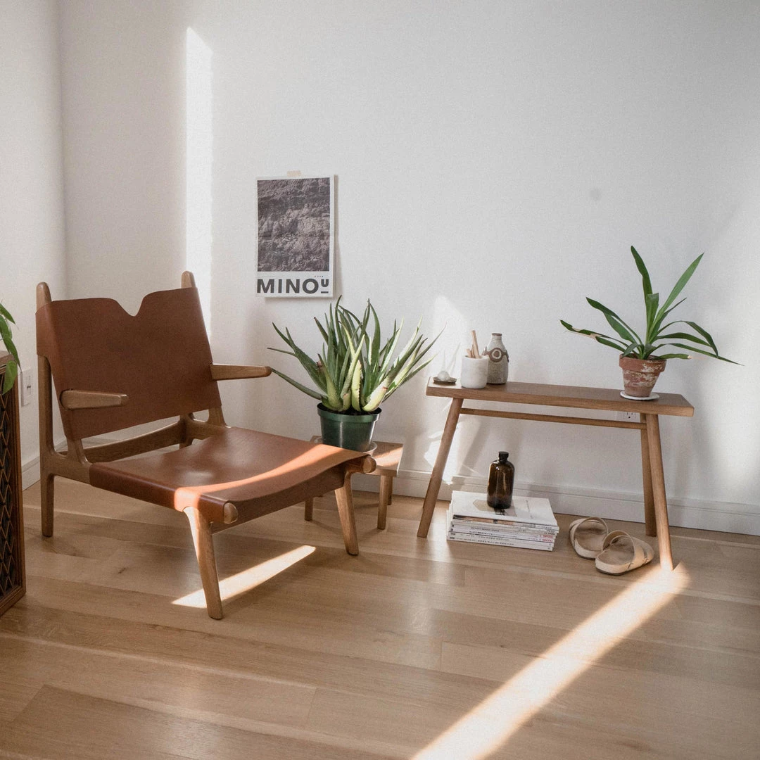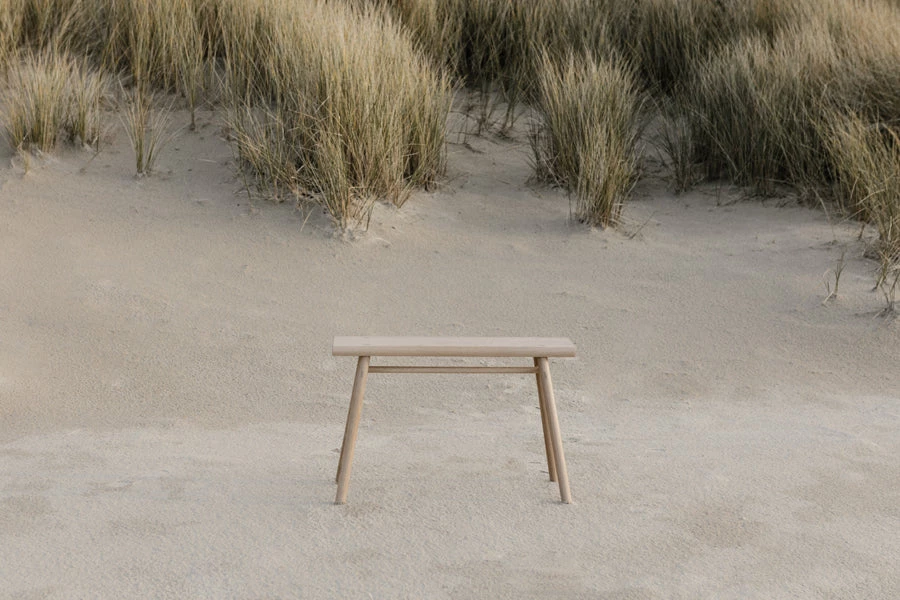 We designed the Wing stand at a size that allows the piece to serve as both a small bench and a stand, making it useful as additional dining room seating, a plant stand, or non-traditional clothing rack. The stand uses our house made tung oil, which is hand rubbed.