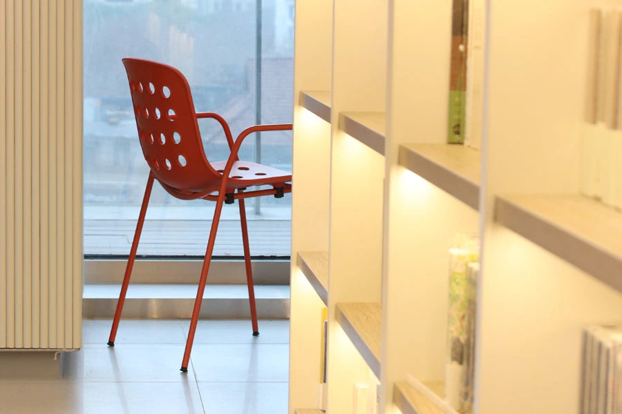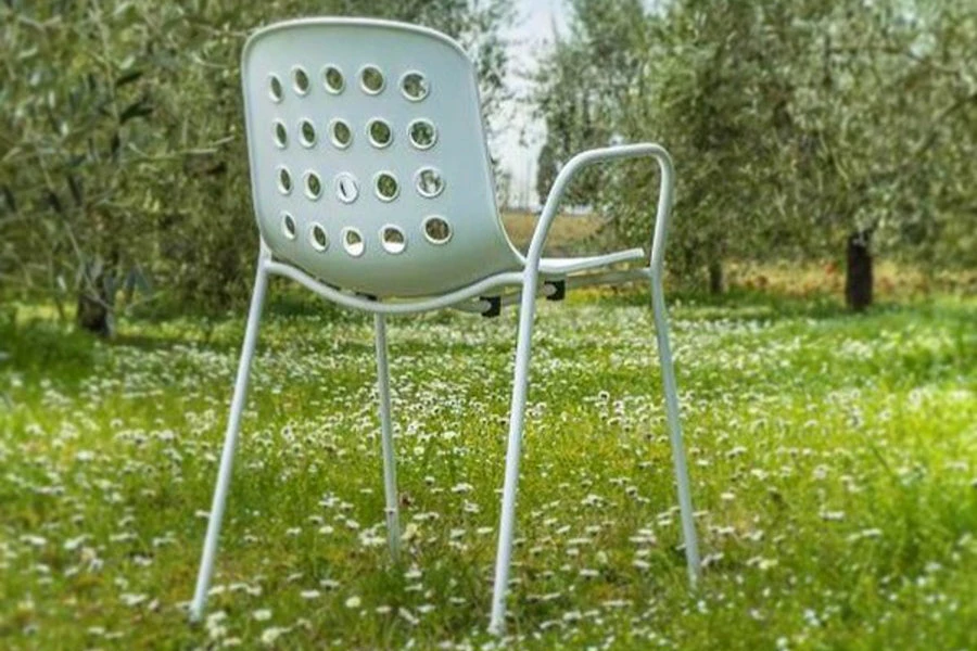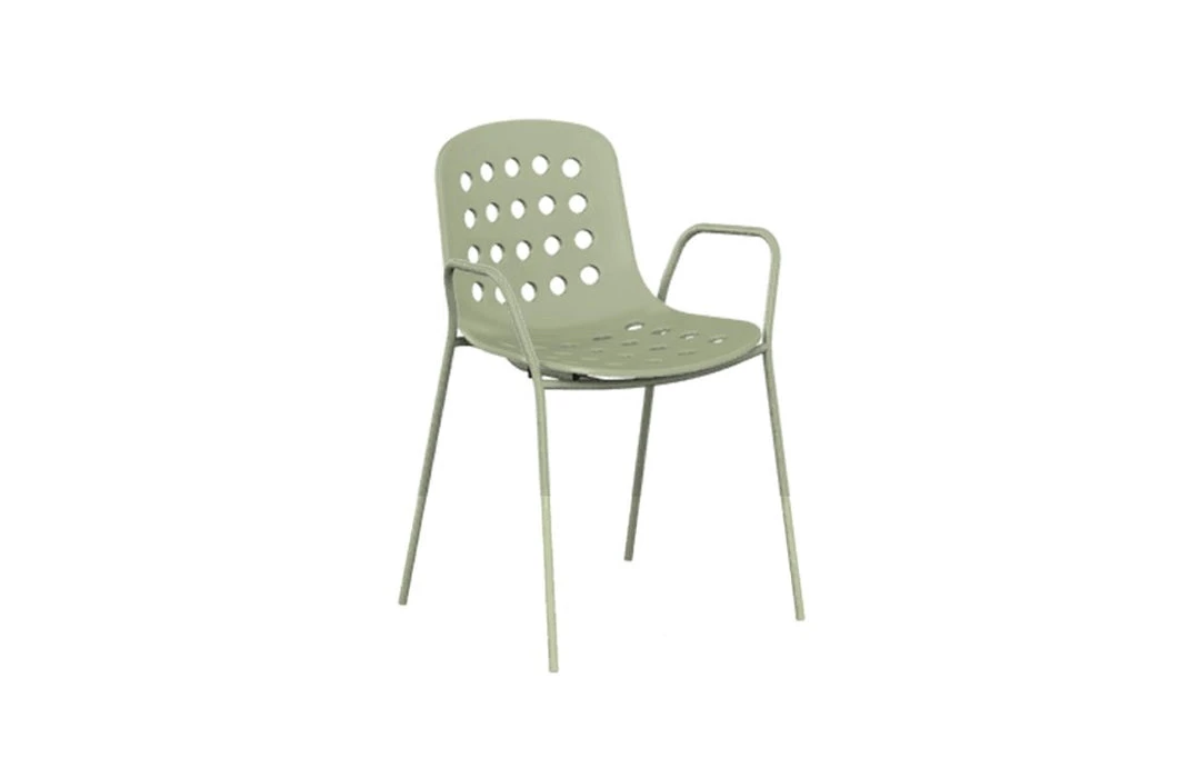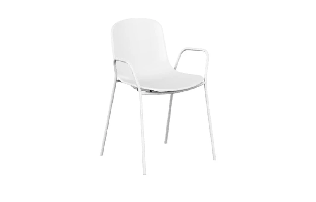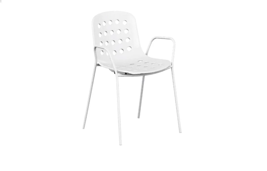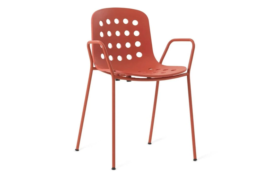 Gertrude Stein used to say: “A rose is a rose is a rose”. Namely, any thing can only be what it is. However, she also meant that we tend to confer personal and universal emotions to a specific name. A design object stands out for aesthetic, shape and colour, as well as for manageability and functionality. Yet, only a chair has the power to literally disappear from our sight as we are using it, and if we forget about it while sitting, then it means it is very comfortable; it welcomes the weight of our body and allows us to rest, to work or to sit at a table for a long time. Indeed, it fully fulfills our expectations about sitting. At home, in a café, at the office, we sit everywhere. The act of sitting is even more frequent than eating or drinking. We sit tens of times a day without even noticing this automatic yet fundamental action. In fact, only an uncomfortable seat can be felt and noticed as soon as we sit down on it. Holi is a chair that will embrace your body at the right height, allowing to comfortably relax your back while maintaining slim, non-encumbering proportions. The collection offers a wide range of sitting solutions, with or without armrests, and two different heights for the stools, which are all stack-able. Holi was designed with either a closed or a perforated backrest, creating an ideal stylistic continuum between indoor and outdoor furniture in order to satisfy any living-space requirement. The metallic structure is painted in the exact same shade as the polypropylene shell, giving the impression of a monoblock element. Available in white, black and red terracotta.