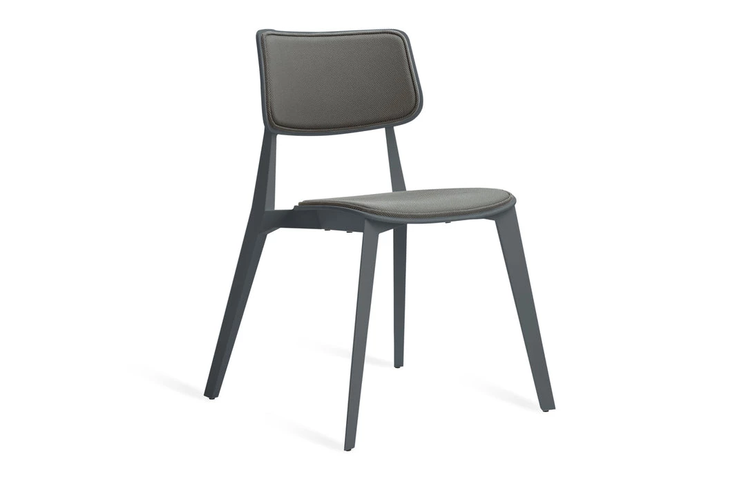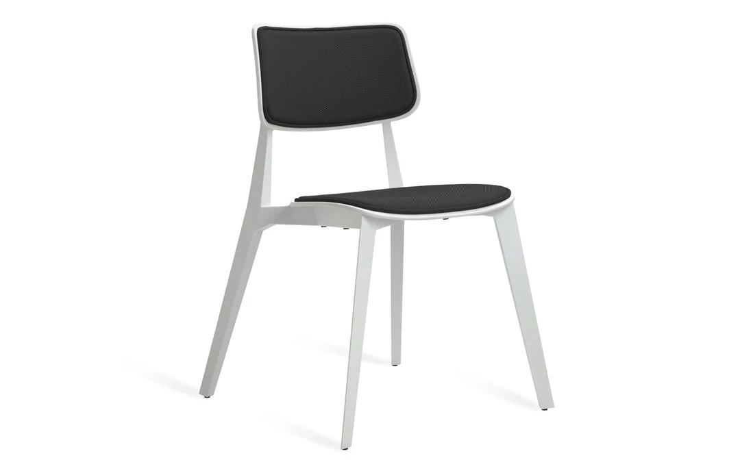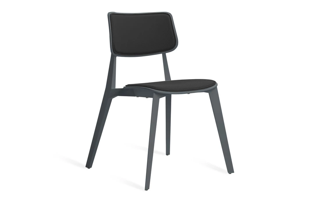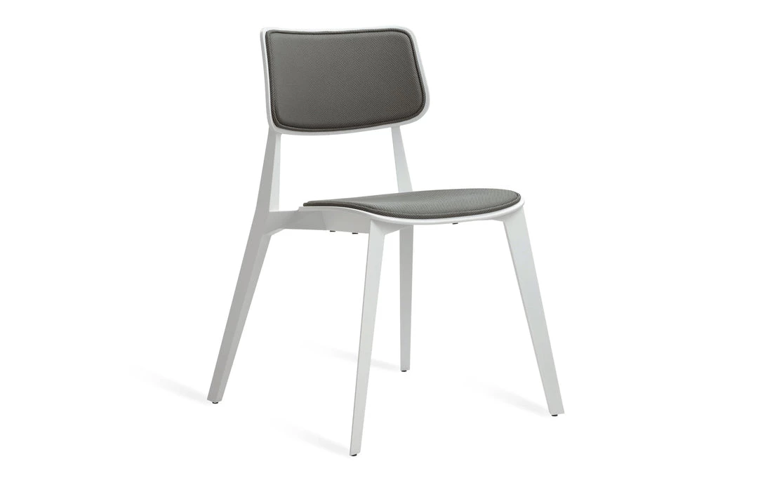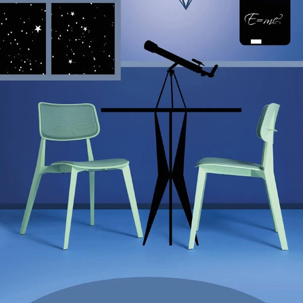 Stellar (stĕl′ər) [derived from the Latin word Stellaris] “Relating to, involving, or resembling a star or stars, or comparable with stars for beauty and quality”. In this case a timeless design meant to be used on a daily basis, where its stellar lines serve both a functional and aesthetic purpose. A shape conceived from childhood memories, where the comfort of those traditional wooden school chairs from the 1950’s with their humble, functional use of materials has been reinvented into a 21st century stackable monoblock plastic chair. The strong lines shared with modern fighter planes and military decorations are decontextualized and put together to form a peaceful inviting multi-functional design. The star-like, triangular volumes on the rear and bottom parts emphasize the load-bearing function of these structures, and form a pleasant aesthetic contrast with the soft and welcoming ergonomics of both seat and backrest. Stellar is offered in a delicate textured in polypropylene reinforced in fiberglass and available in five different colours: white, cool gray, anthracite, black and mint green. The perforated version, ideal for outdoor applications, and the semi-padded version, with colour-matched or contrasting fabrics applied onto the seat and backrest, complete the collection.
