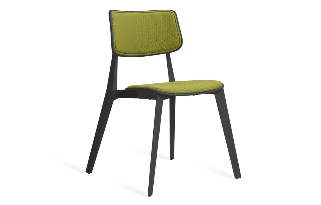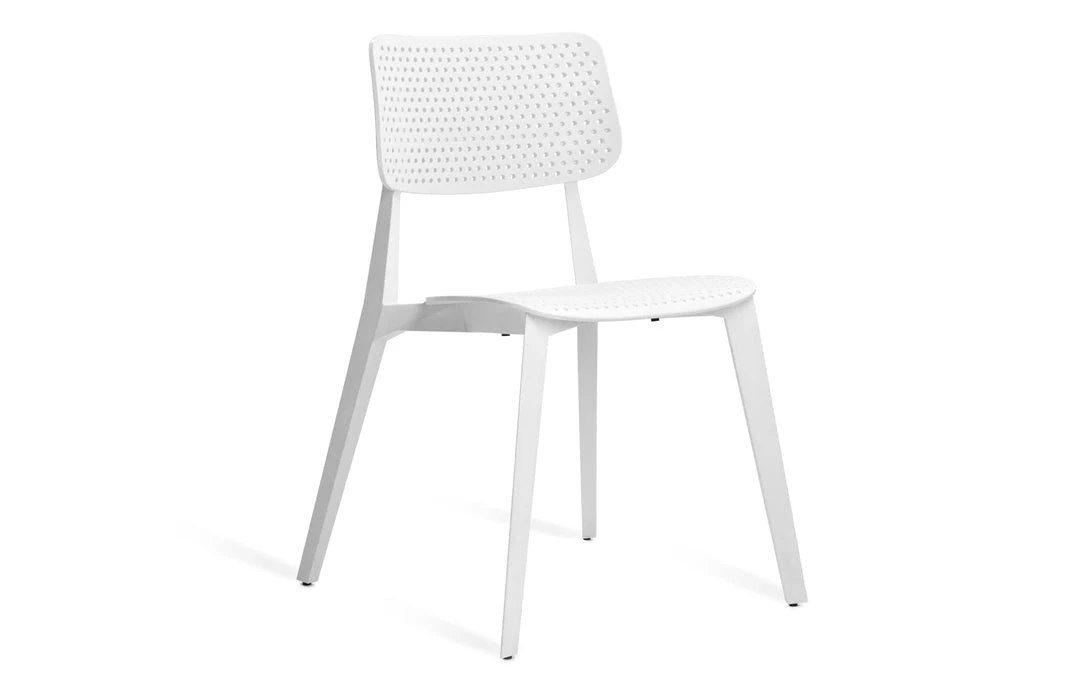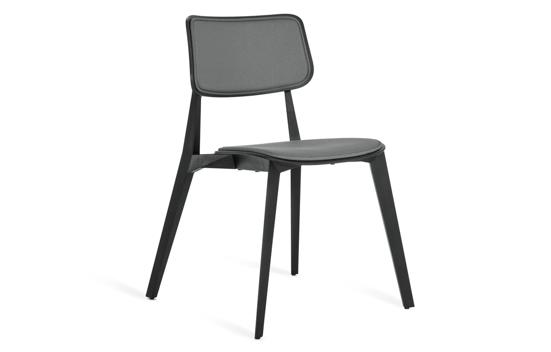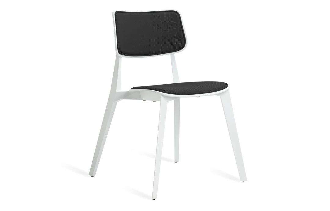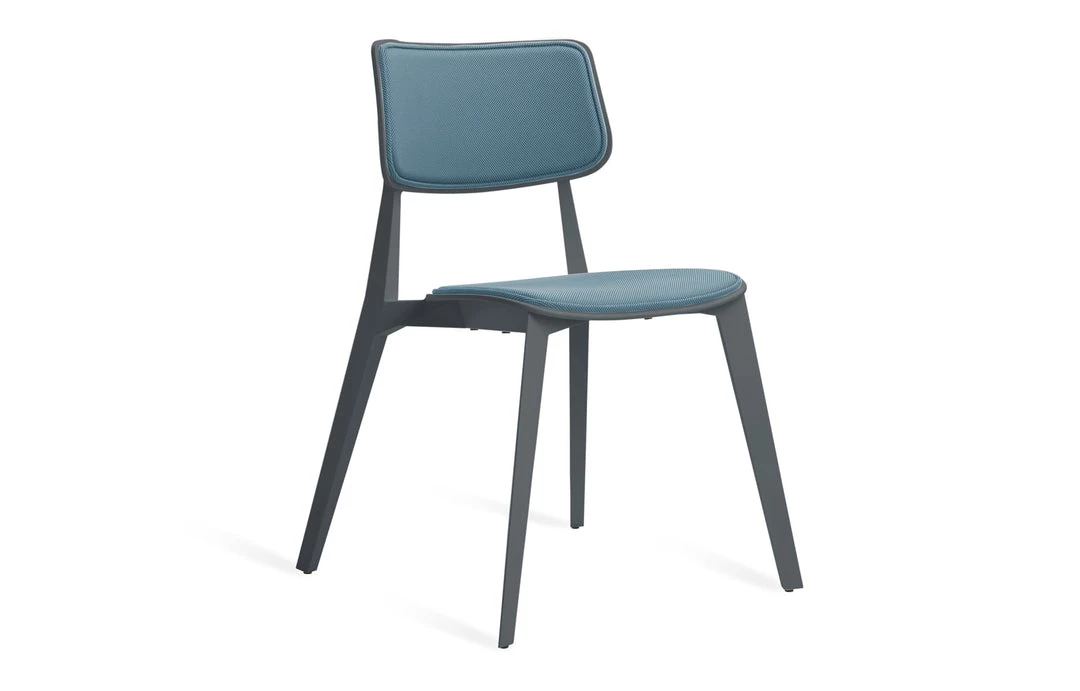 Stellar (stĕl′ər) [derived from the Latin word Stellaris] “Relating to, involving, or resembling a star or stars, or comparable with stars for beauty and quality”. In this case a timeless design meant to be used on a daily basis, where its stellar lines serve both a functional and aesthetic purpose. A shape conceived from childhood memories, where the comfort of those traditional wooden school chairs from the 1950’s with their humble, functional use of materials has been reinvented into a 21st century stackable monoblock plastic chair. The strong lines shared with modern fighter planes and military decorations are decontextualized and put together to form a peaceful inviting multi-functional design. The star-like, triangular volumes on the rear and bottom parts emphasize the load-bearing function of these structures, and form a pleasant aesthetic contrast with the soft and welcoming ergonomics of both seat and backrest. Stellar is offered in a delicate textured in polypropylene reinforced in fiberglass and available in five different colours: white, cool gray, anthracite, black and mint green. The perforated version, ideal for outdoor applications, and the semi-padded version, with colour-matched or contrasting fabrics applied onto the seat and backrest, complete the collection.