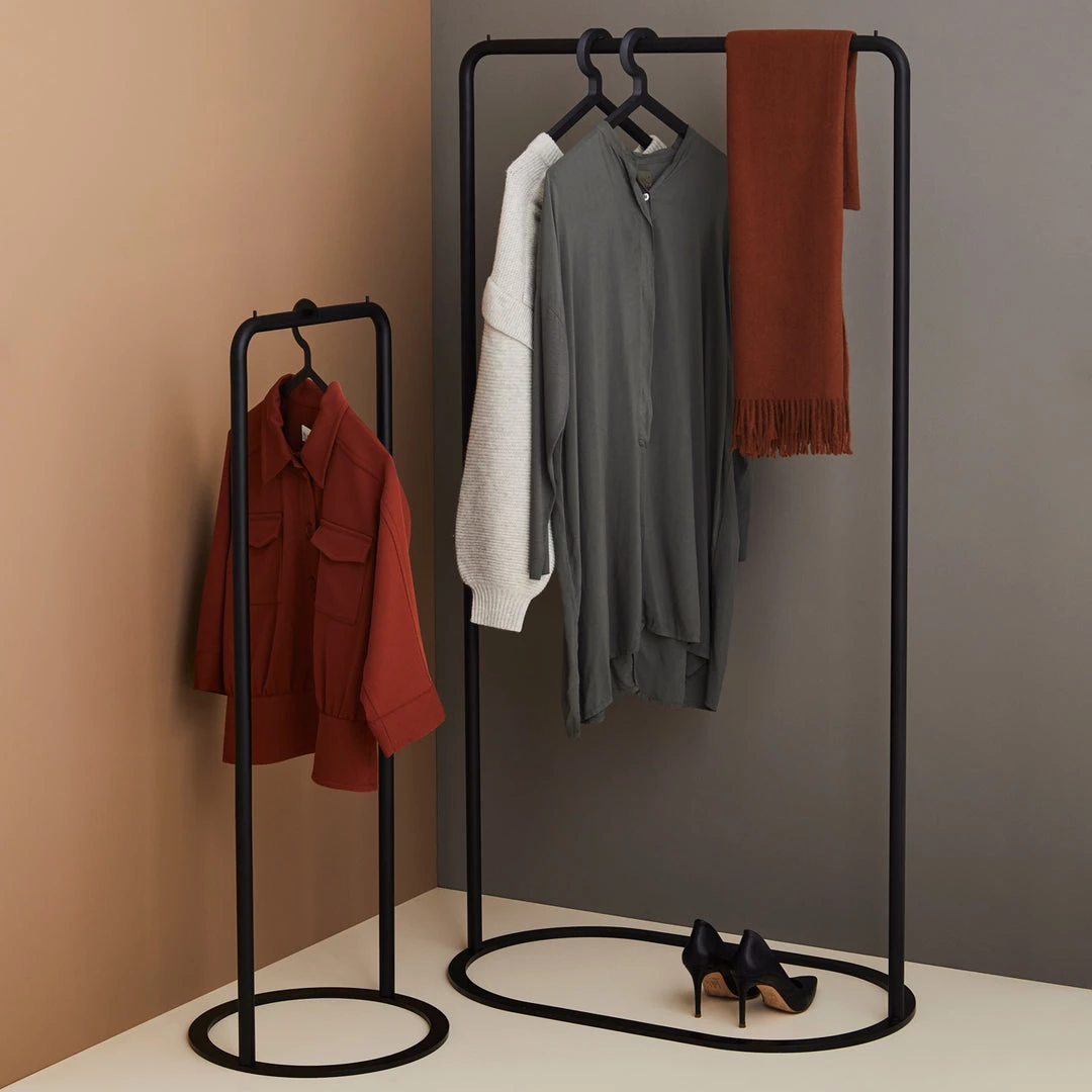 O&O is inspired by two different-shaped O-rings that belong together and can be arranged as desired in a variety of positions. The two separate elements, in different heights and widths, rise from the ground as a sleek but stable construction. Beautiful on their own or as a merged unit. With its flexible feature, O&O is ideal for the modern lifestyle. Place it in the hallway, walk-in closet or bedroom or move it between the spaces and arrange it as desired in a variety of positions.